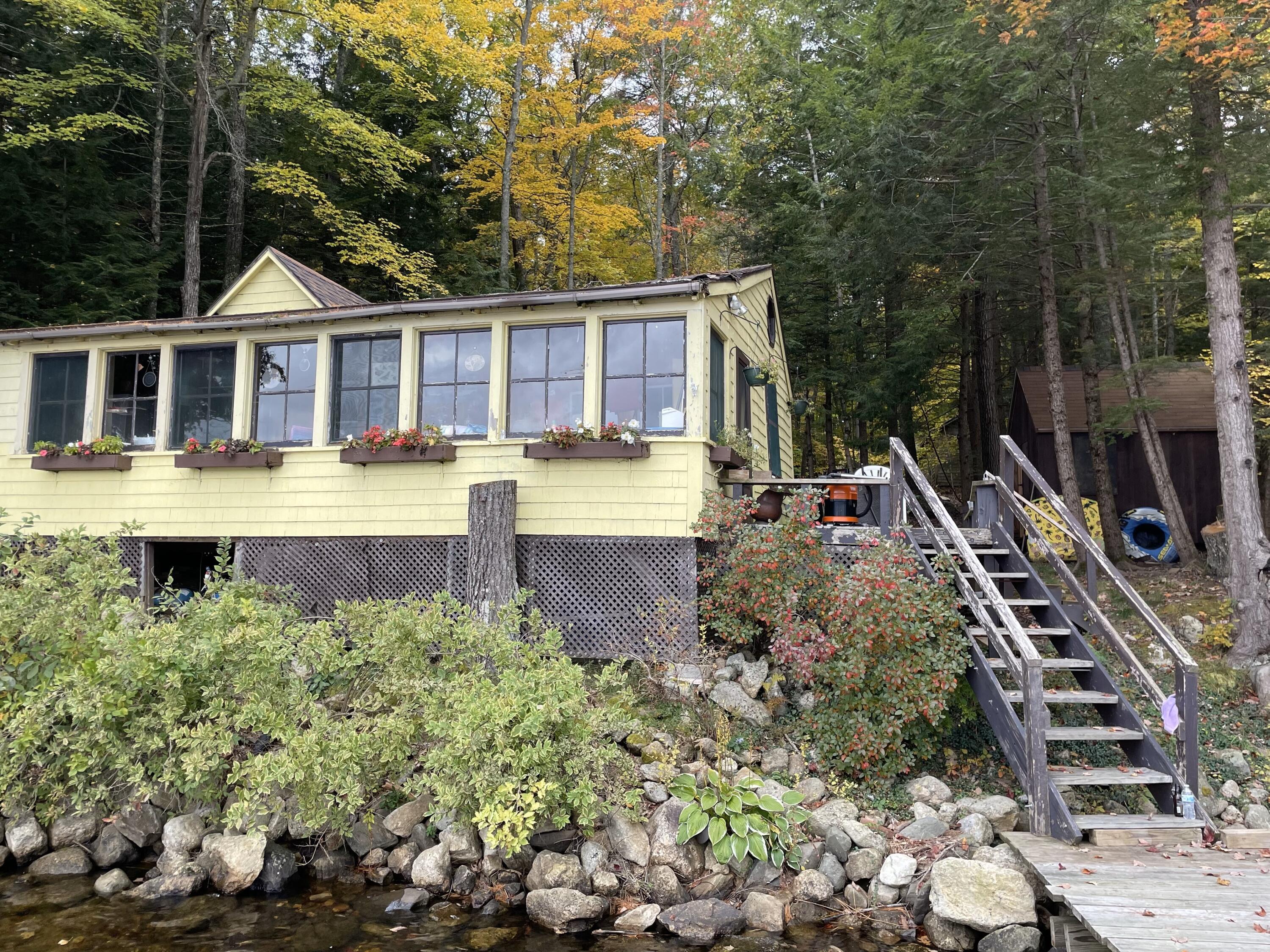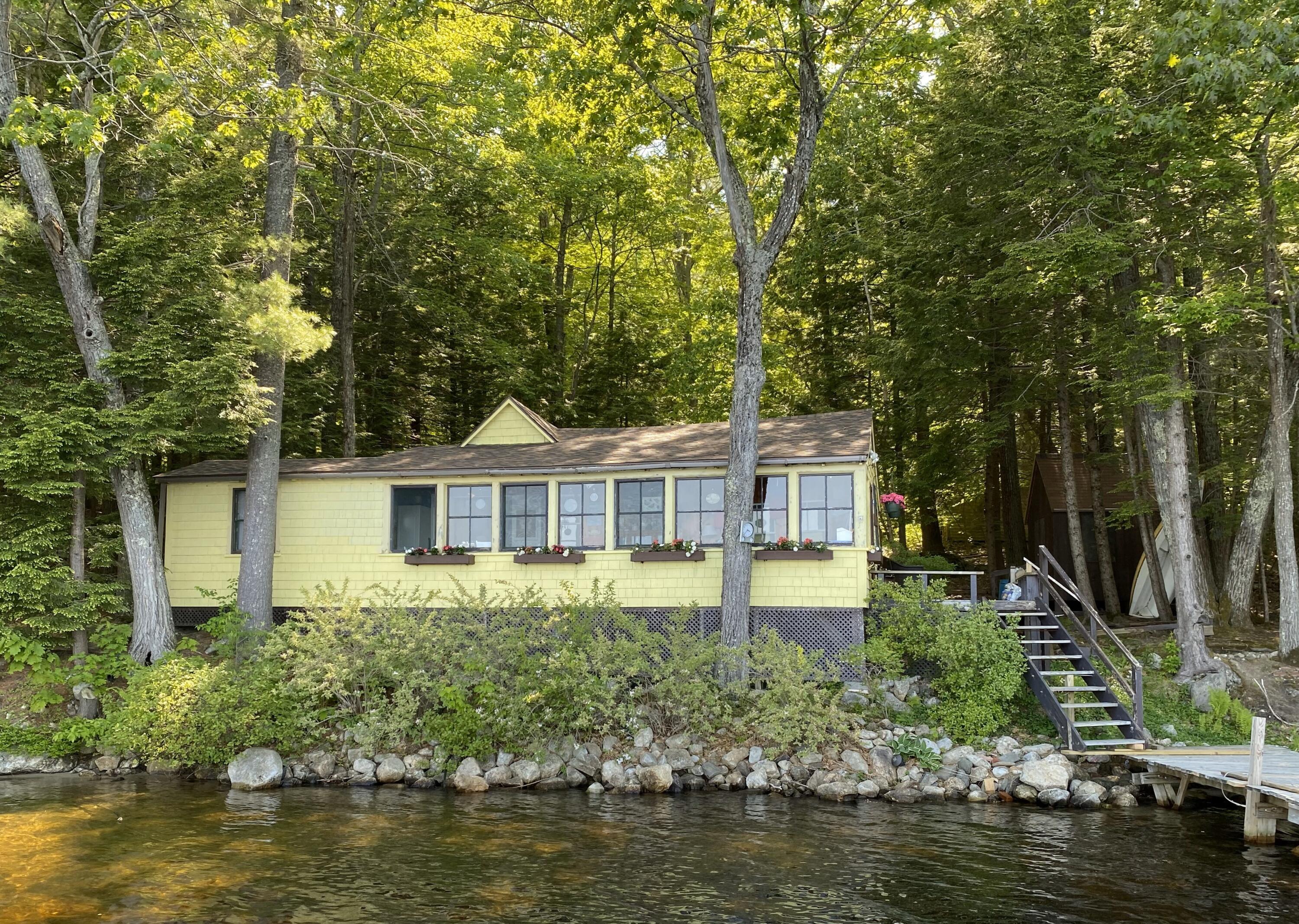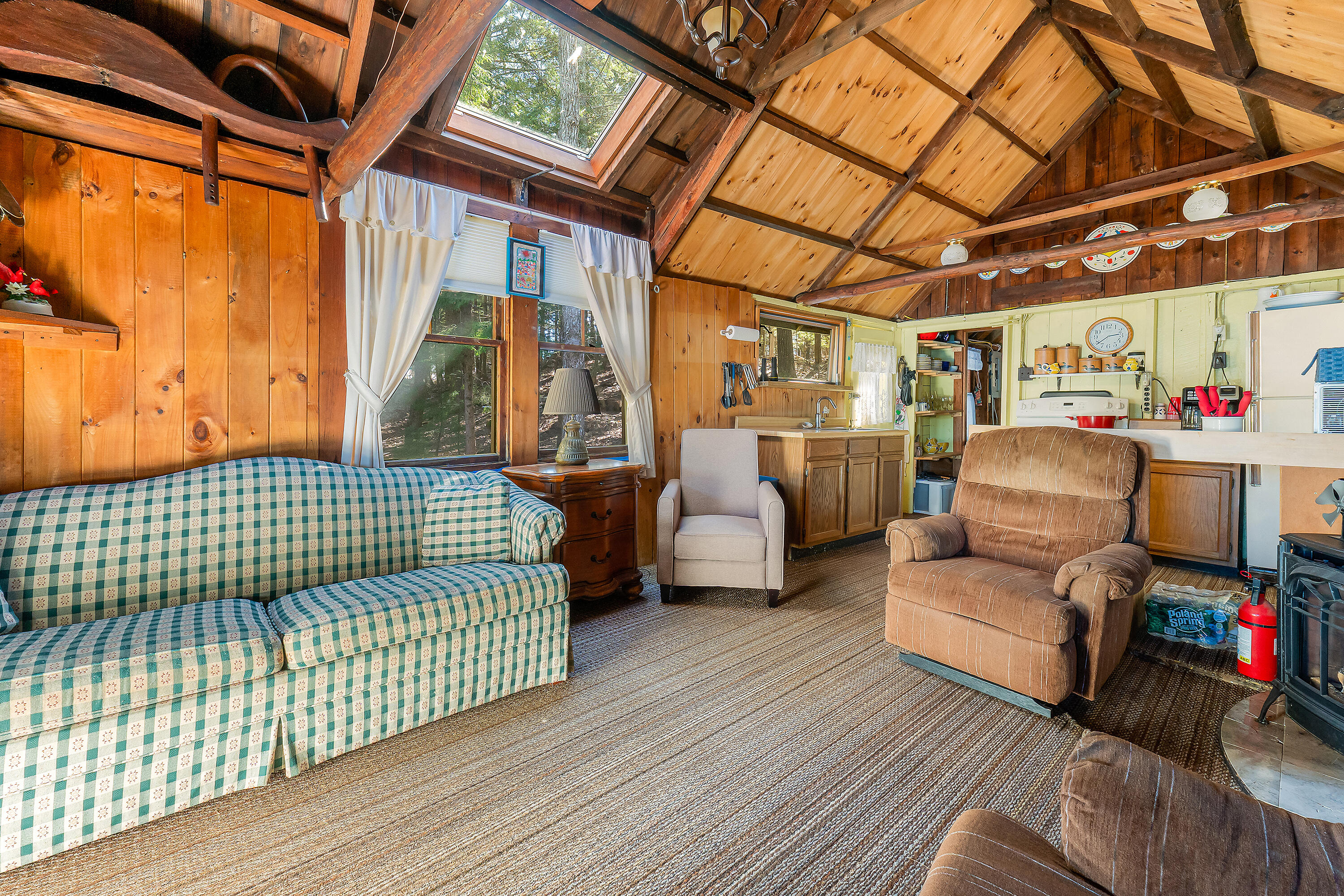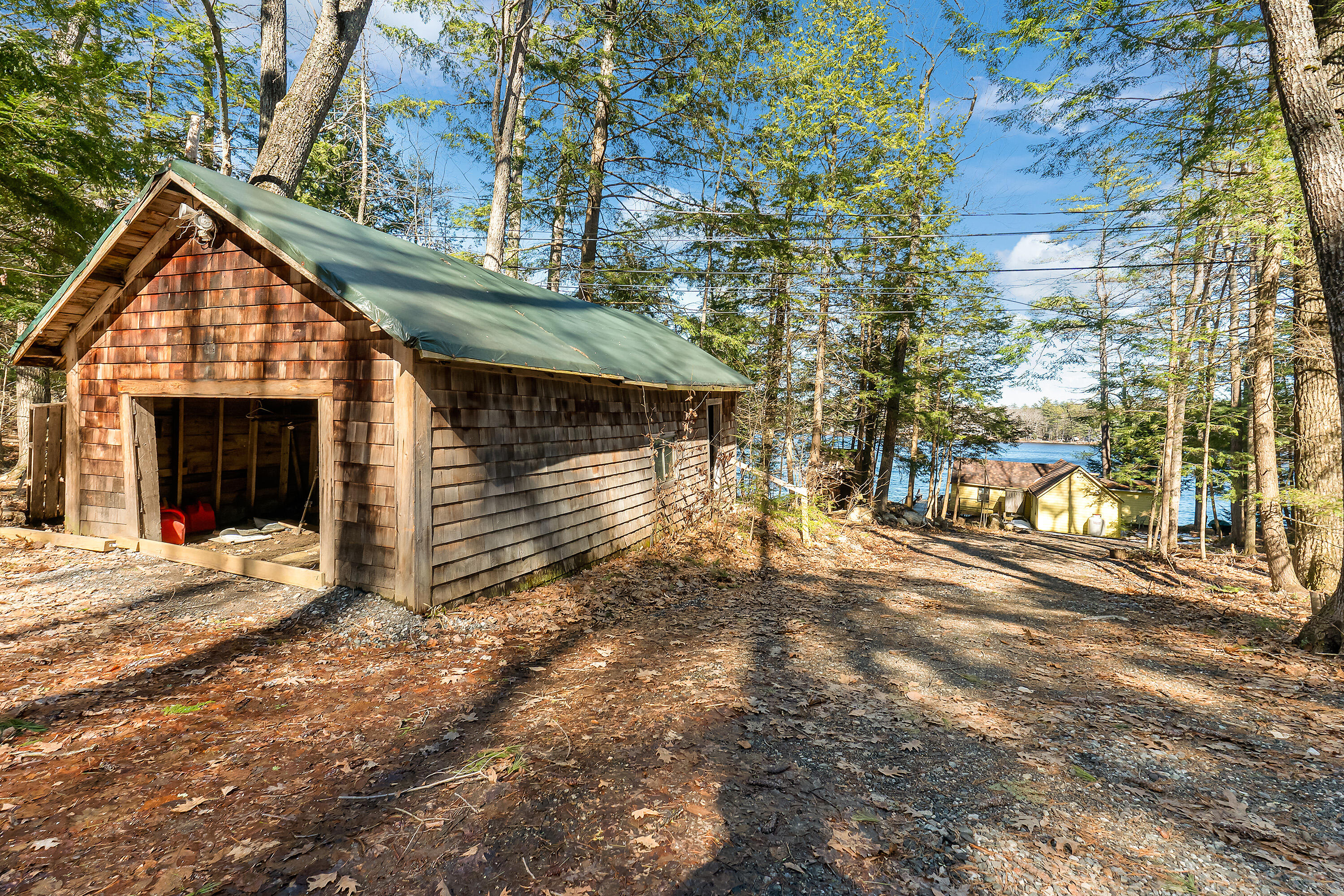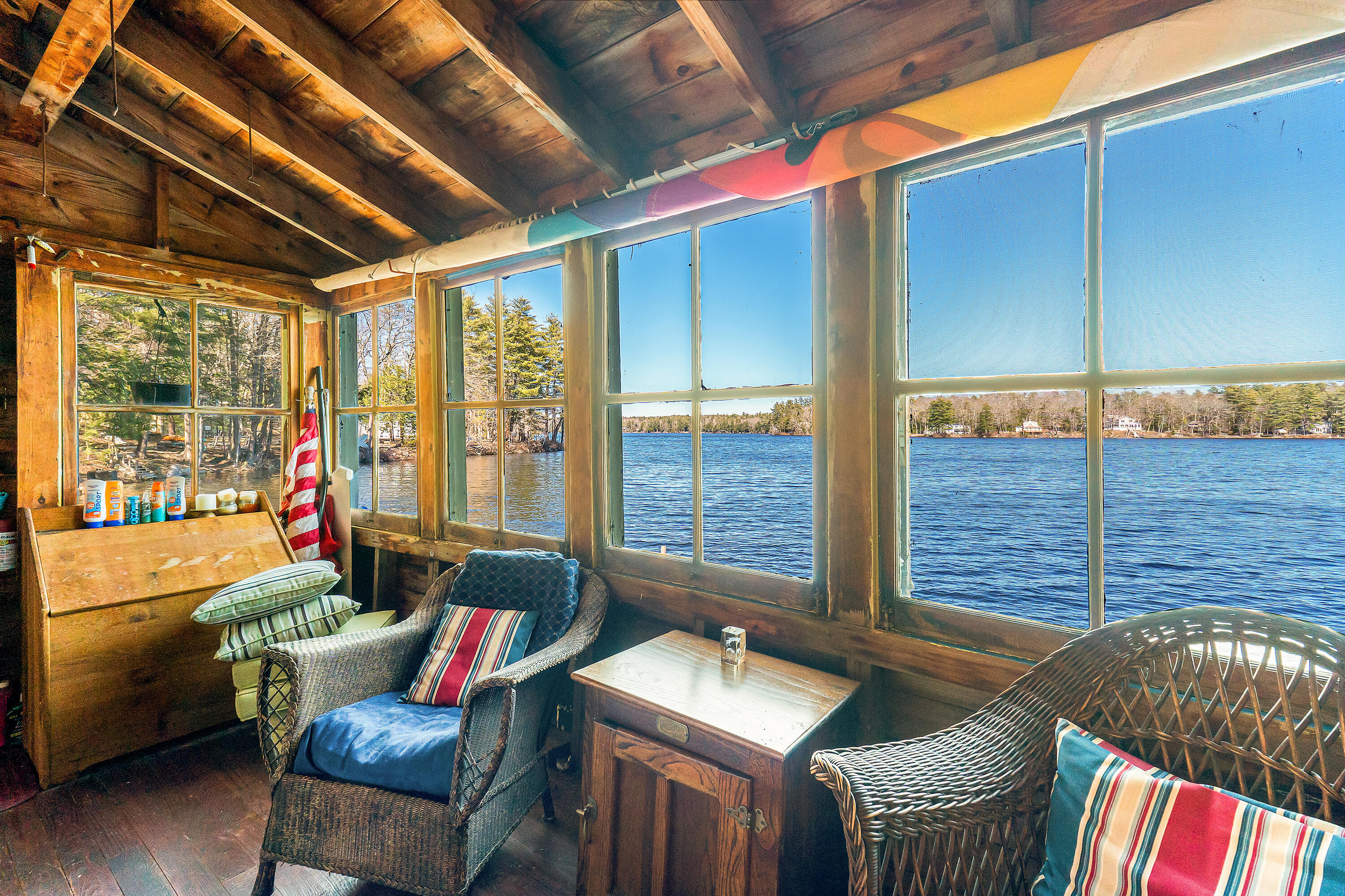 Adorable Maine Cottage on beautiful Highland Lake boasting a wall of windows on the water. Sip your coffee and listen to the loons. Turnkey as it stands, sold furnished so you can be on the water right away. Nestled into the pines on a king sized 1.3 acre lot with 178 (yes, 178!) feet of frontage, dock, enclosed outdoor shower, and sweet sandy swimming spot. Take advantage of the footprints of both the cottage and garage within the shoreland zone to renovate, expand, or rebuild. If you have been thinking of building but have been frustrated by the thought of building far back from the water, this could be the unicorn for which you have been looking. Move right in and enjoy the water and take your time to plan your new lake home.
