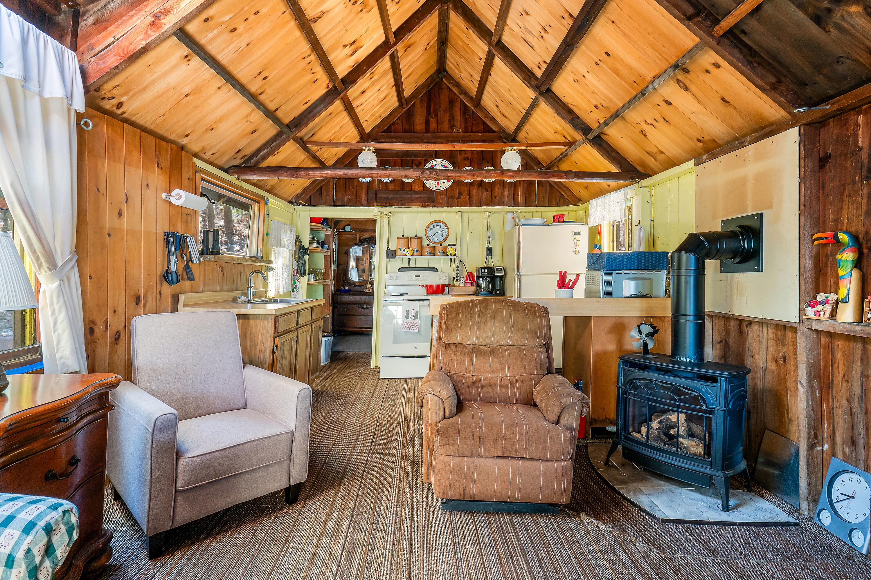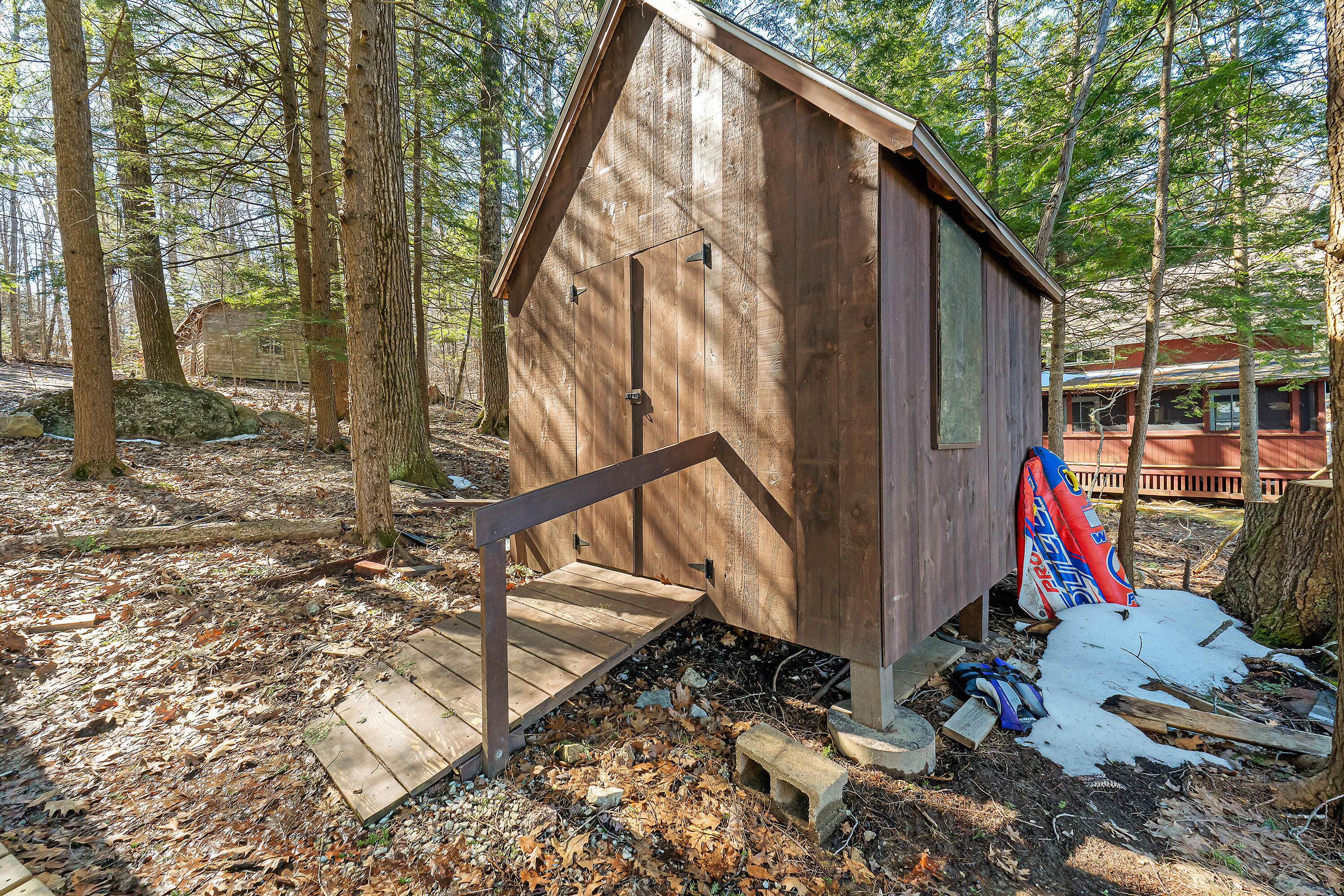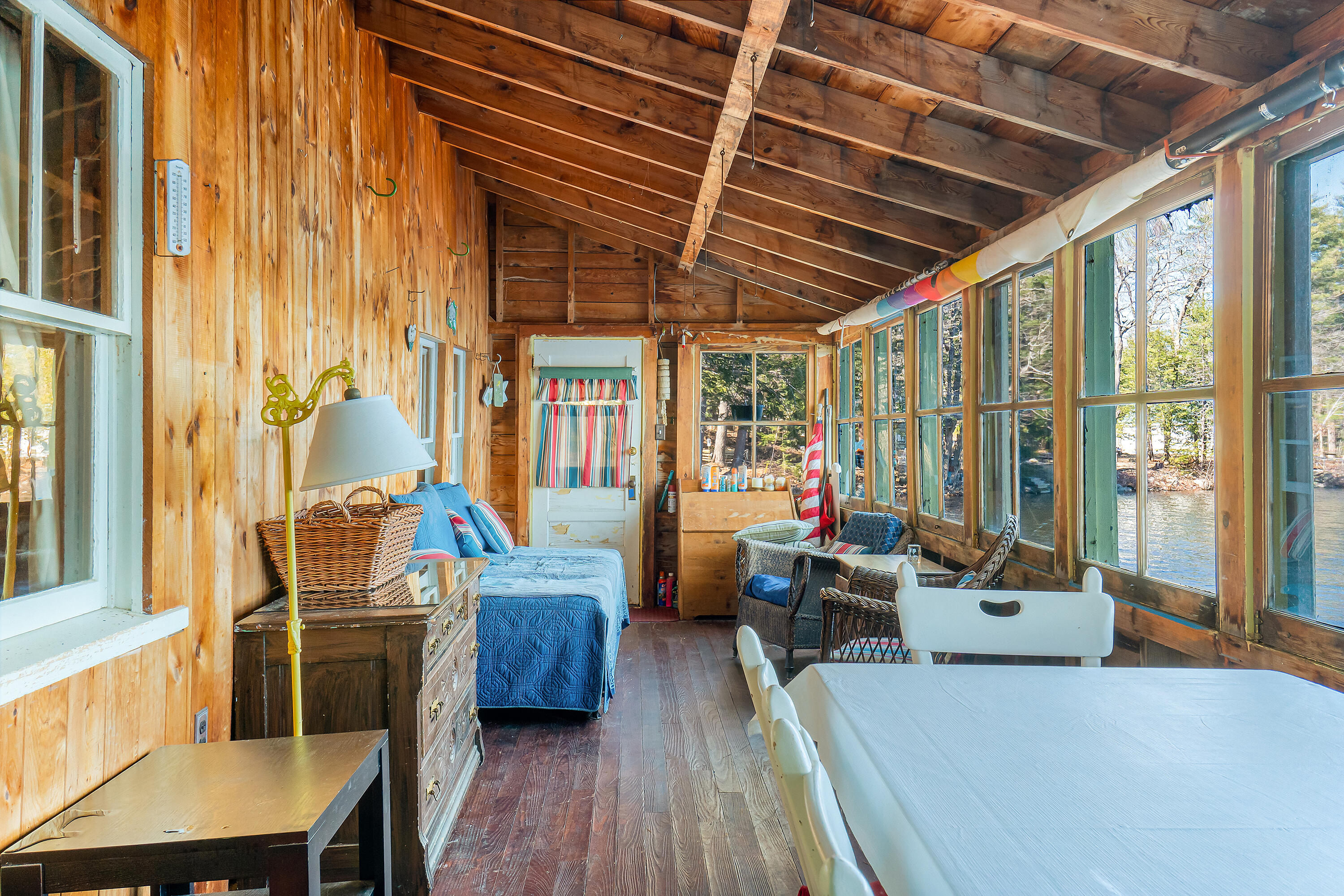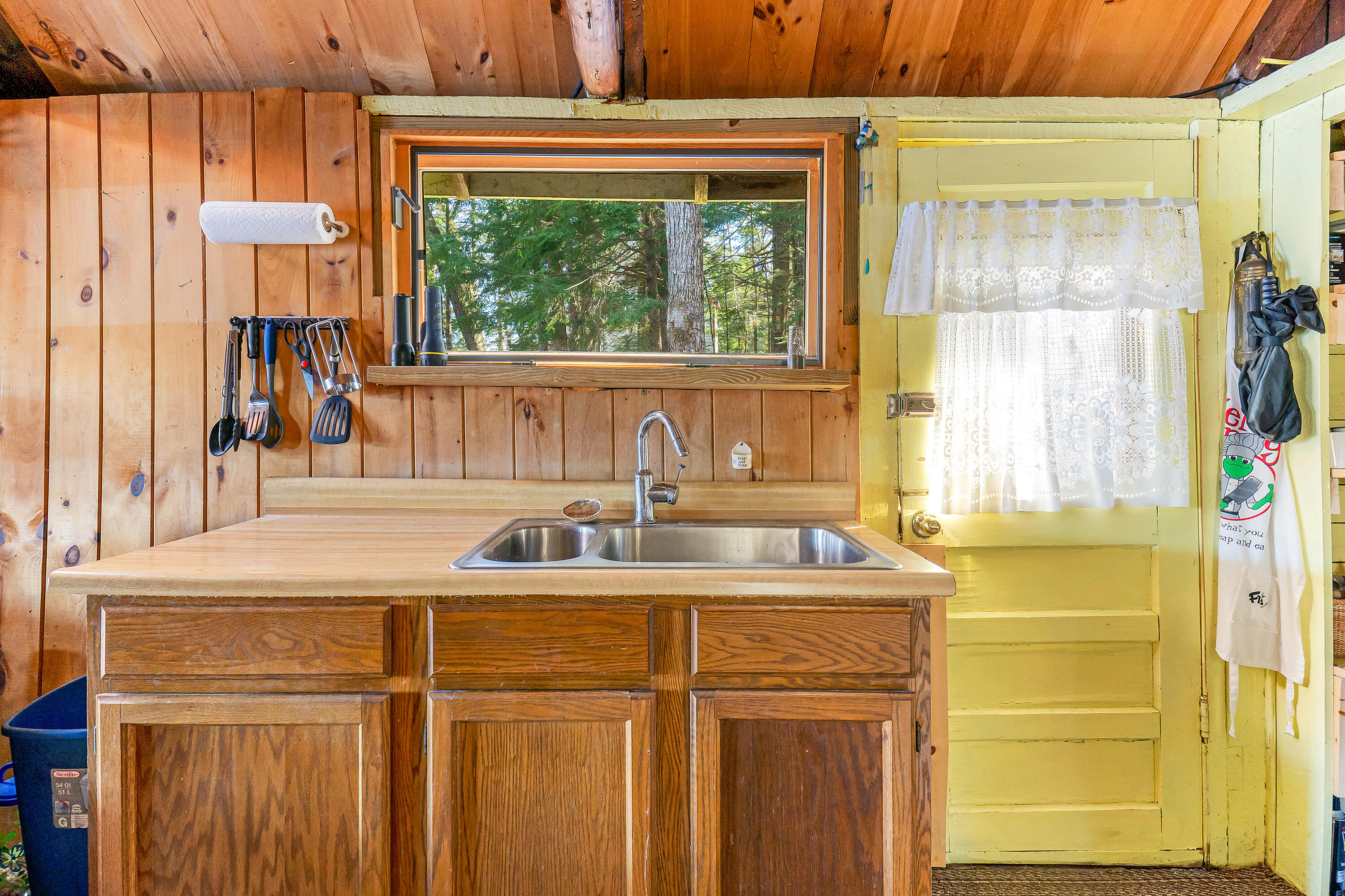 Adorable Maine Cottage on beautiful Highland Lake boasting a wall of windows on the water. Sip your coffee and listen to the loons. Turnkey as it stands, sold furnished so you can be on the water right away. Nestled into the pines on a king sized 1.3 acre lot with 178 (yes, 178!) feet of frontage, dock, enclosed outdoor shower, and sweet sandy swimming spot. Take advantage of the footprints of both the cottage and garage within the shoreland zone to renovate, expand, or rebuild. If you have been thinking of building but have been frustrated by the thought of building far back from the water, this could be the unicorn for which you have been looking. Move right in and enjoy the water and take your time to plan your new lake home.