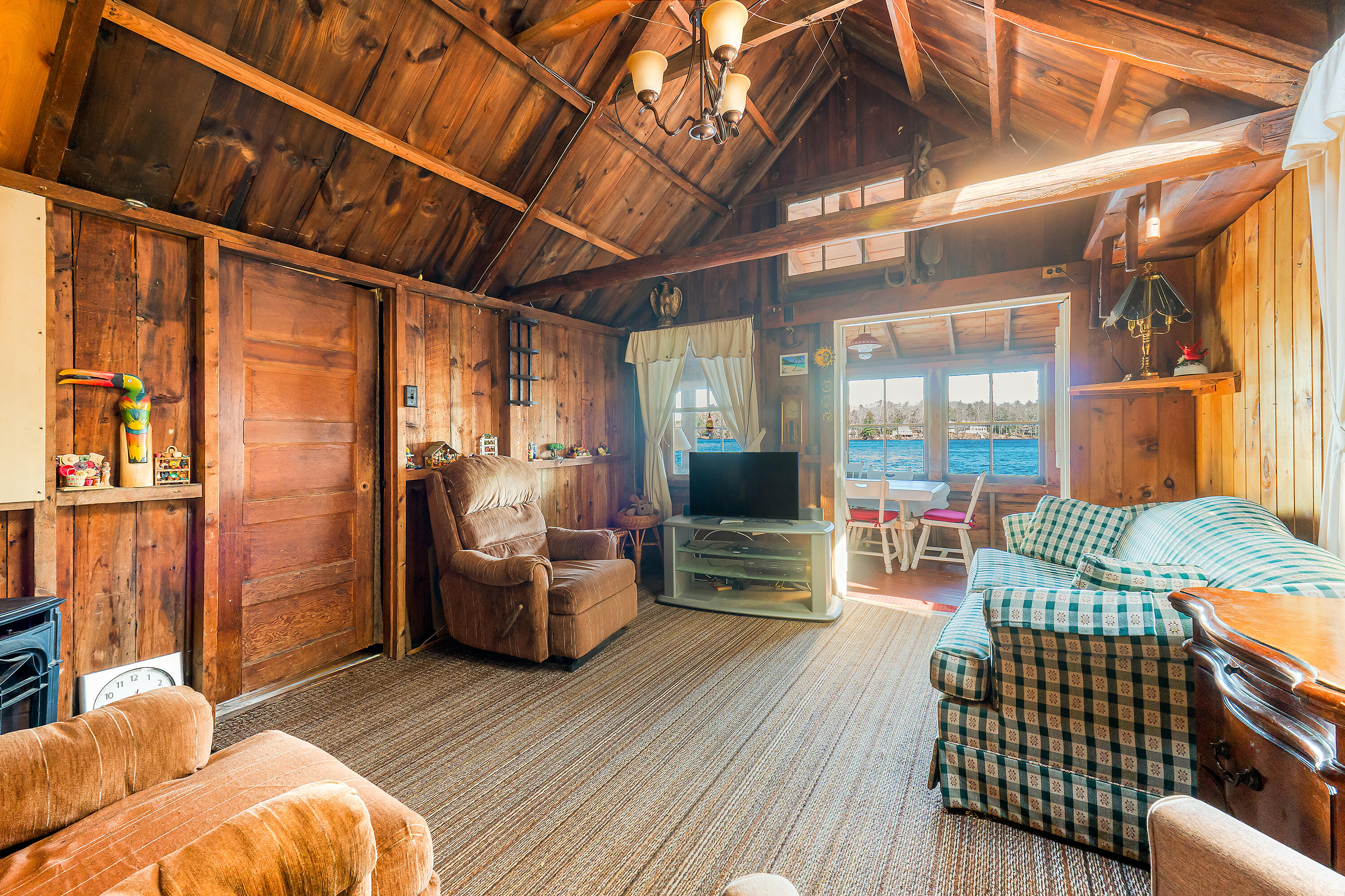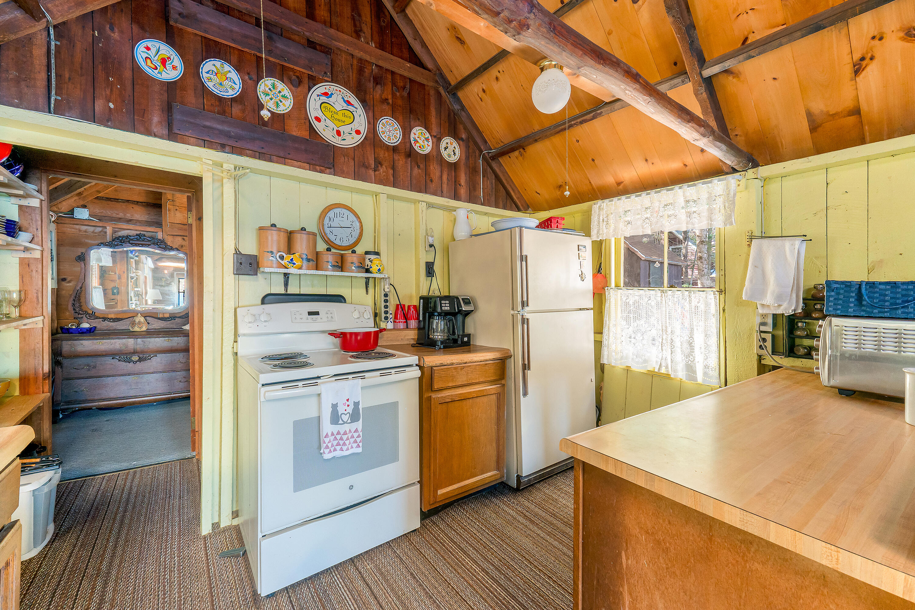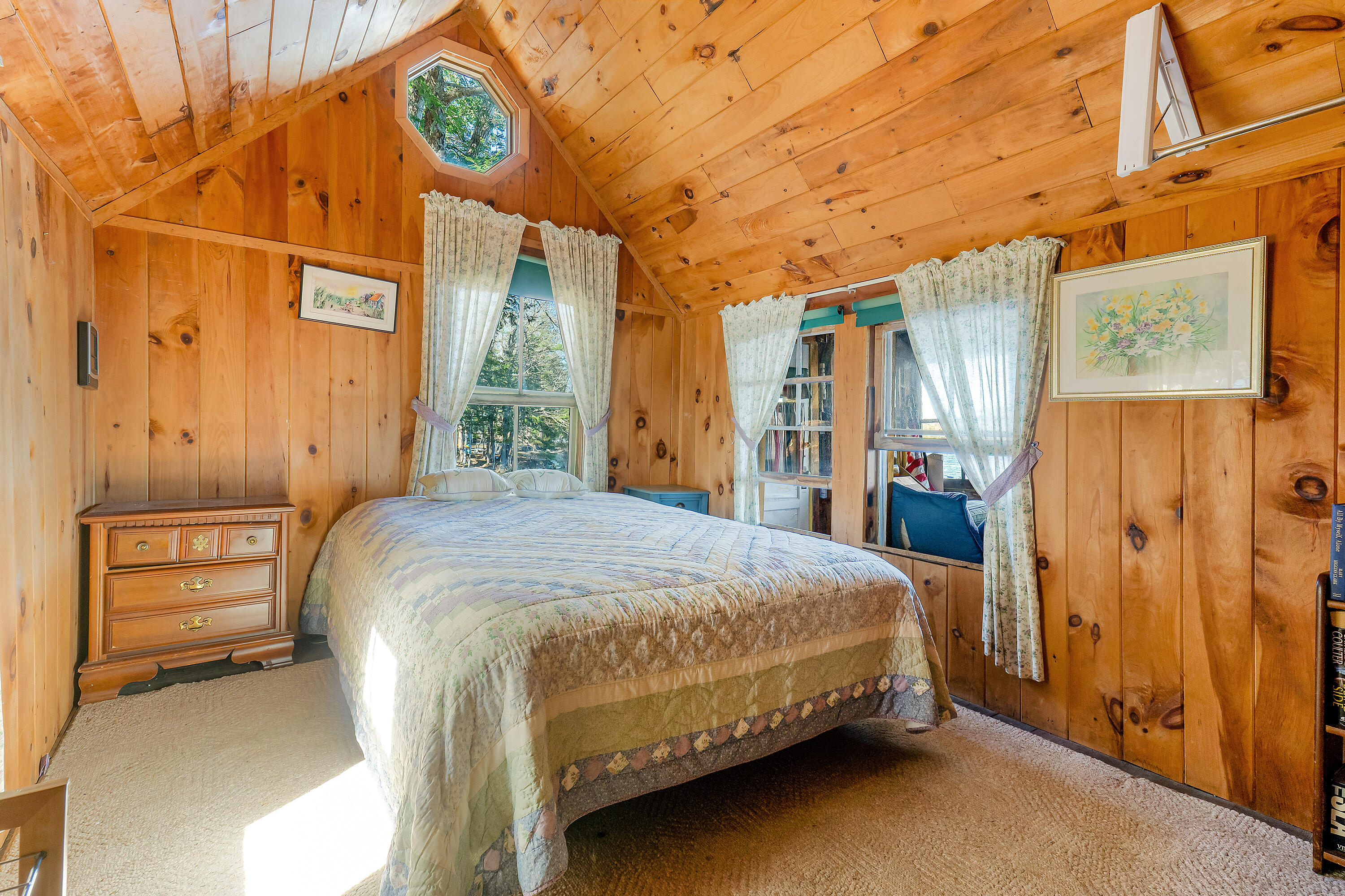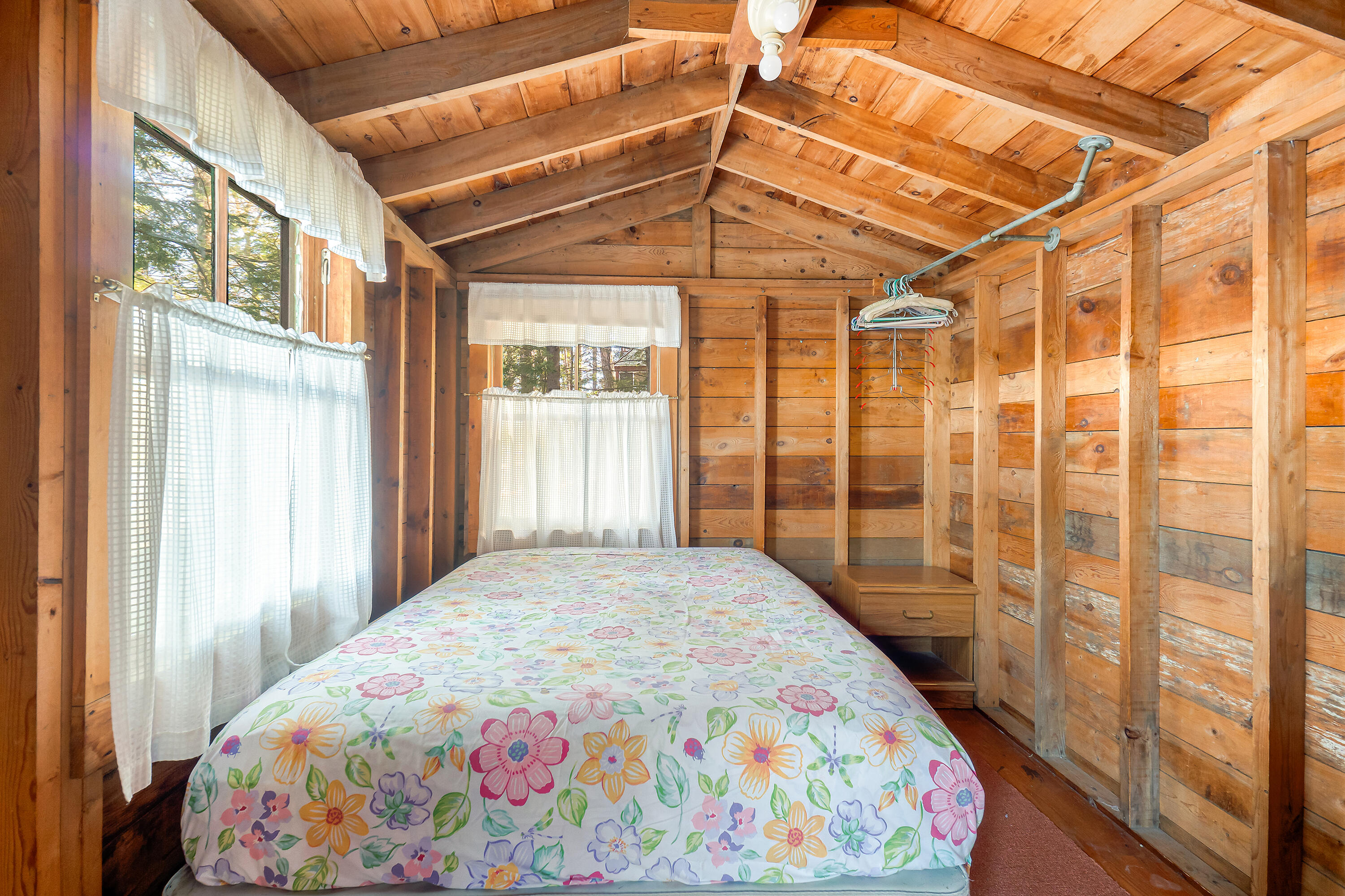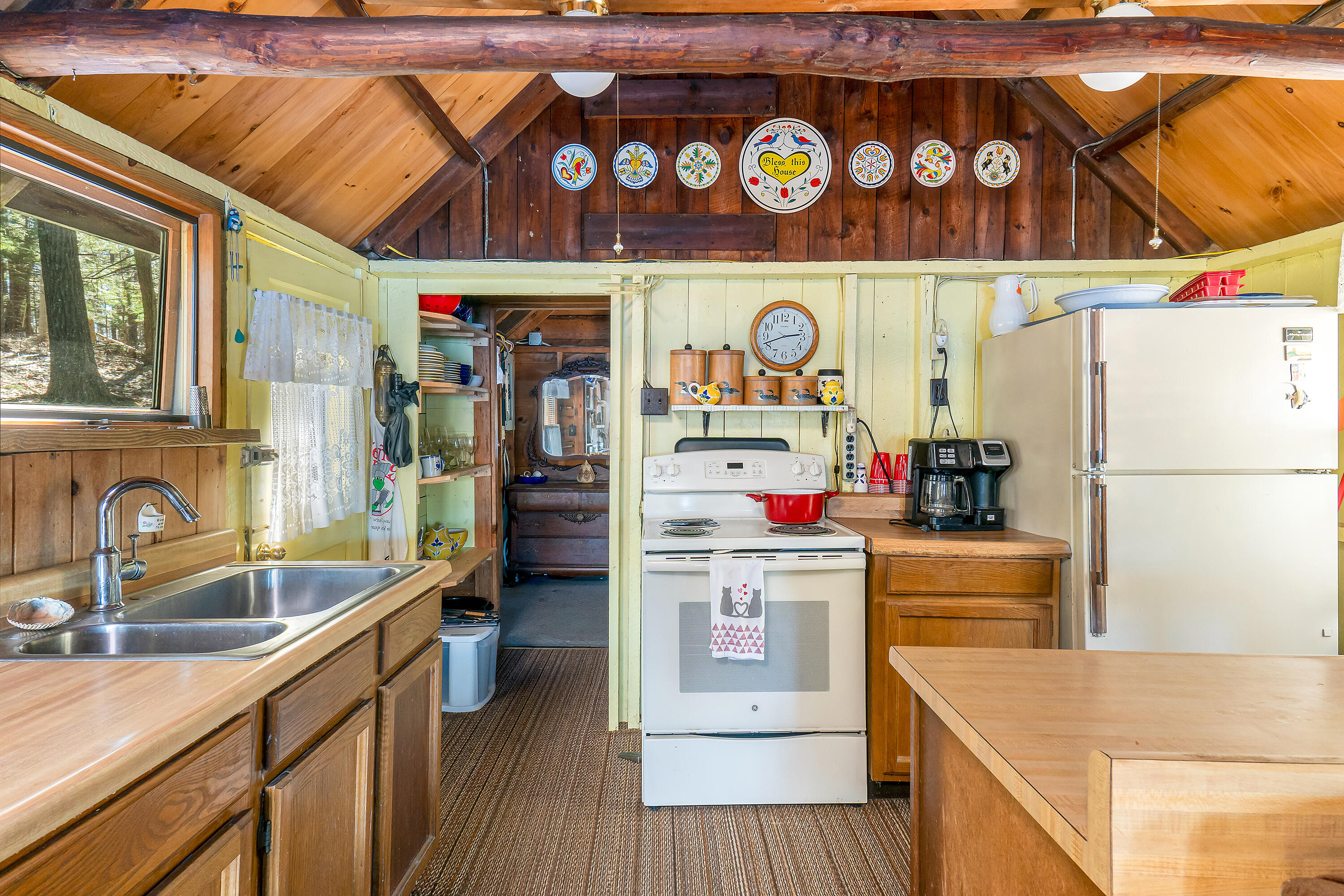 Adorable Maine Cottage on beautiful Highland Lake boasting a wall of windows on the water. Sip your coffee and listen to the loons. Turnkey as it stands, sold furnished so you can be on the water right away. Nestled into the pines on a king sized 1.3 acre lot with 178 (yes, 178!) feet of frontage, dock, enclosed outdoor shower, and sweet sandy swimming spot. Take advantage of the footprints of both the cottage and garage within the shoreland zone to renovate, expand, or rebuild. If you have been thinking of building but have been frustrated by the thought of building far back from the water, this could be the unicorn for which you have been looking. Move right in and enjoy the water and take your time to plan your new lake home.