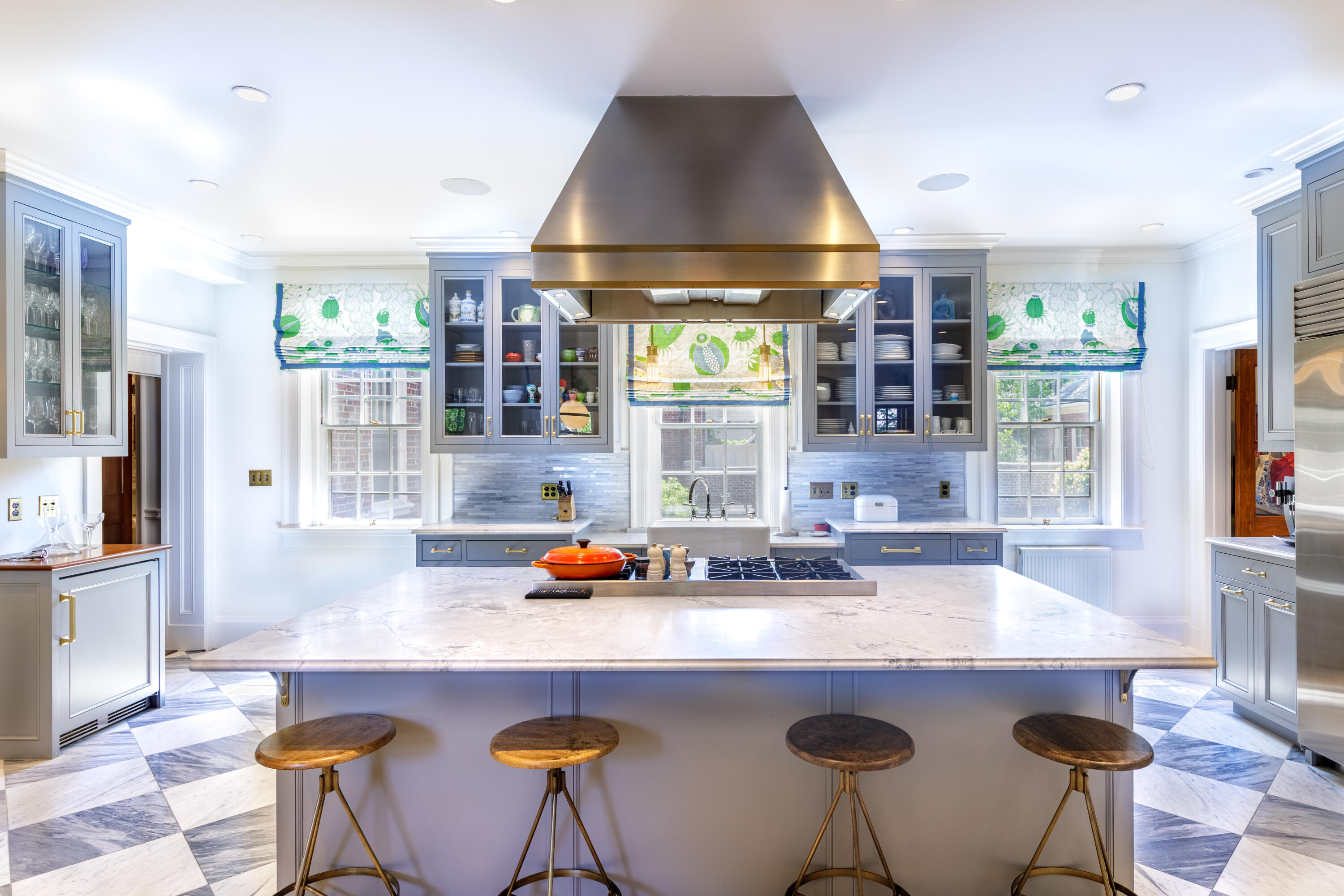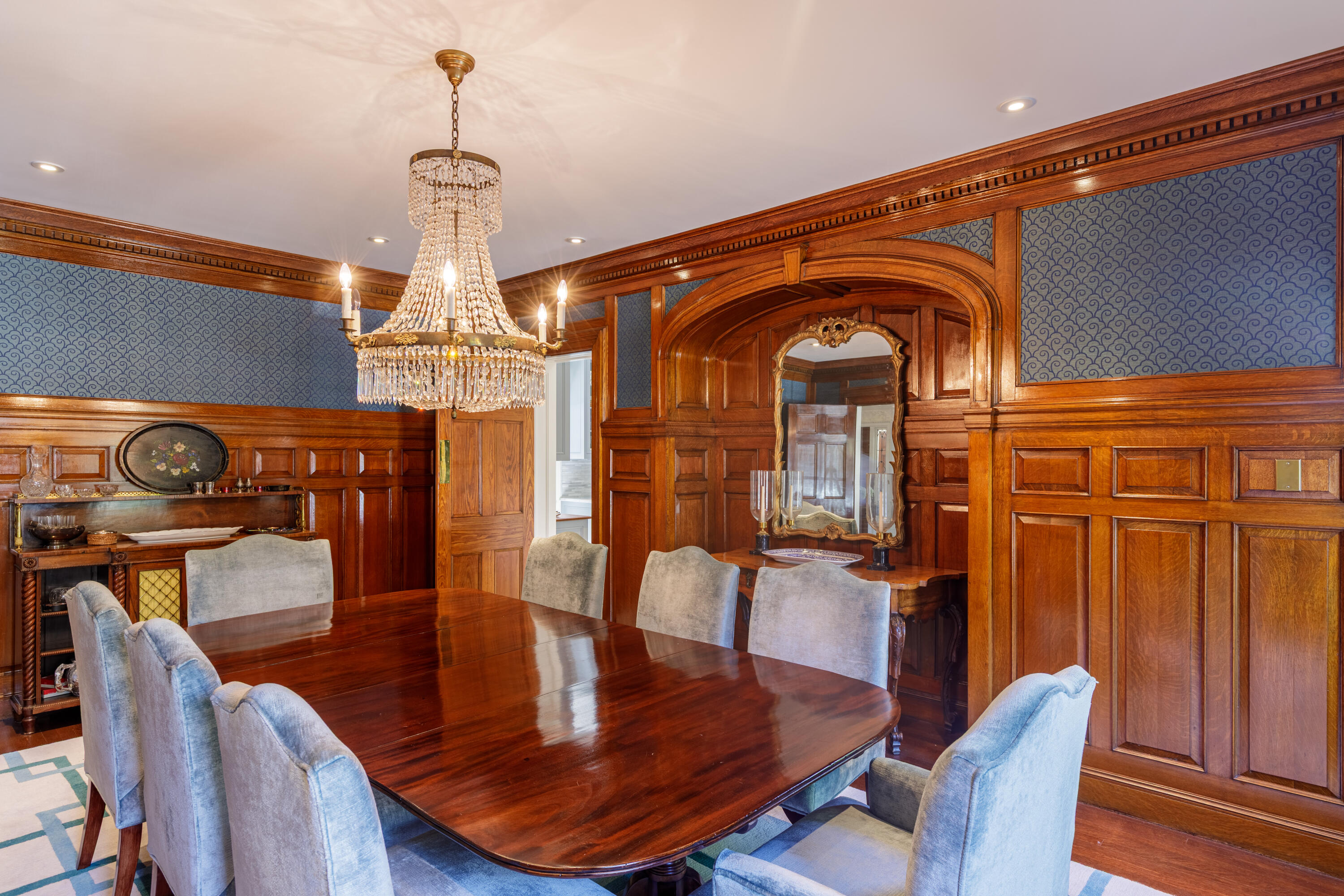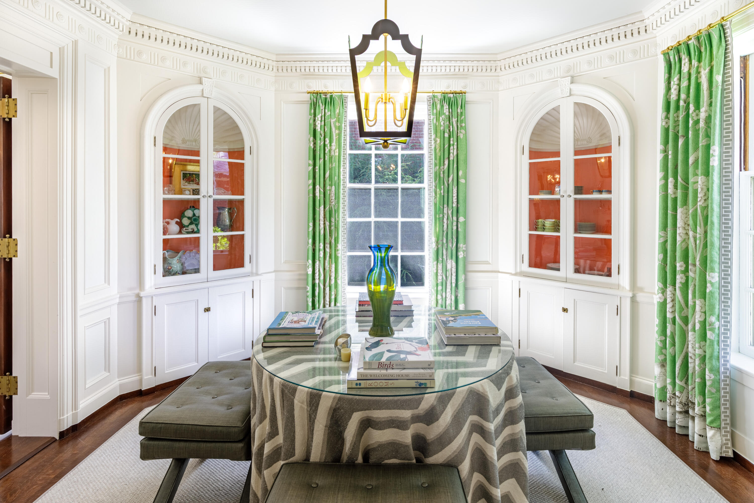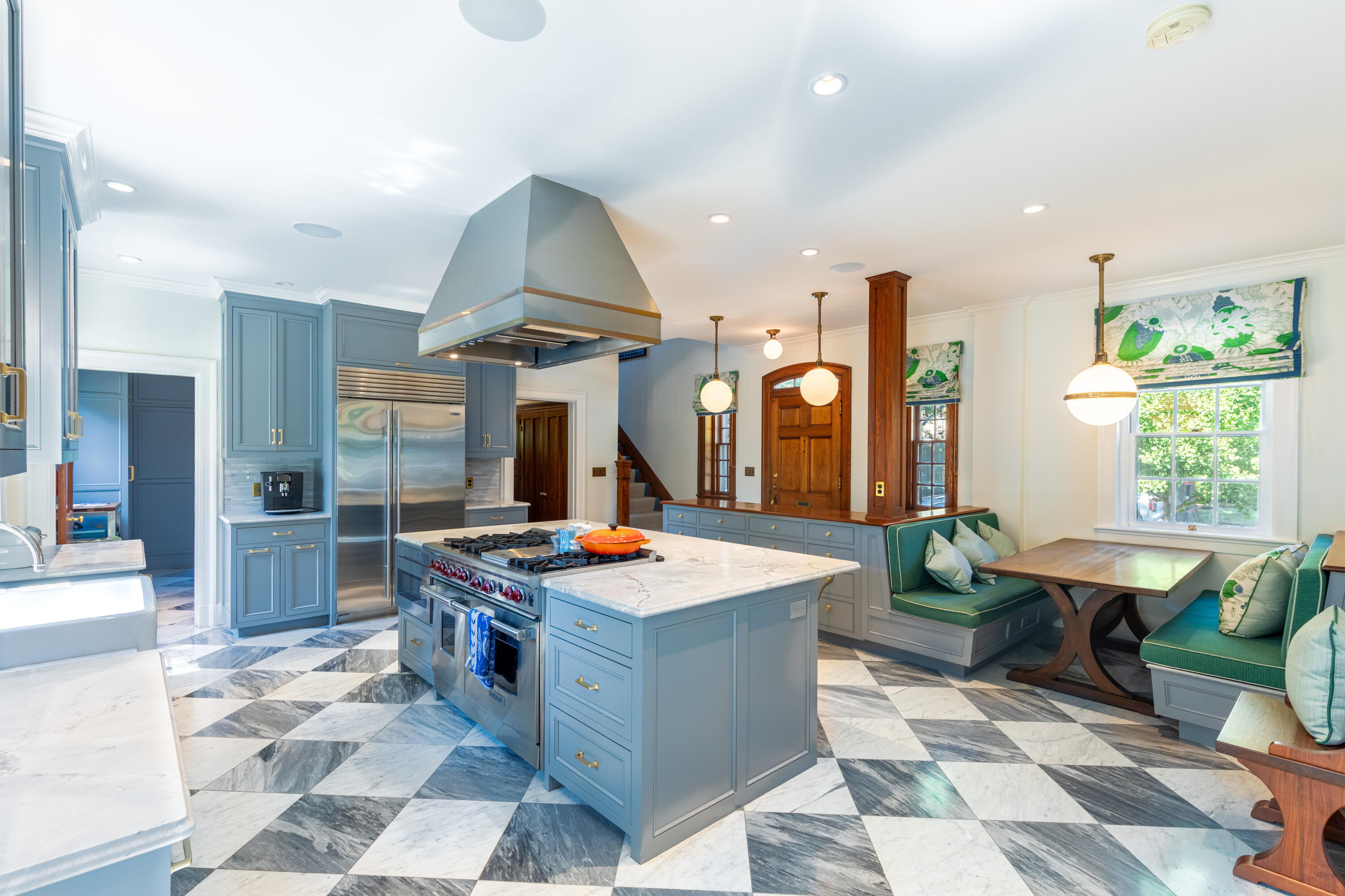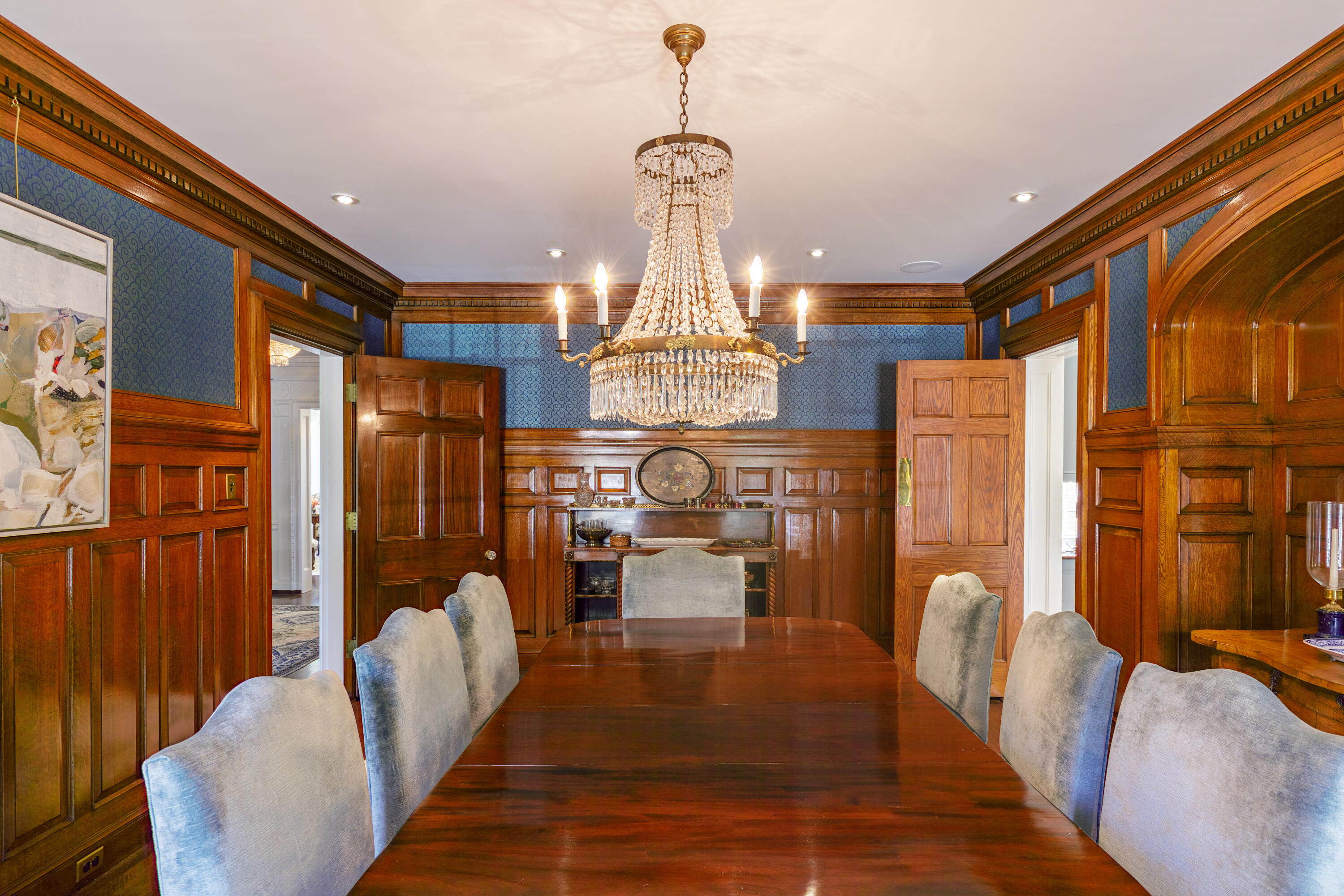 The fabulous kitchen is a showpiece with custom cabinetry, a large center island, and a walk-in pantry, seamlessly connecting to formal and informal living spaces. Throughout, you'll find custom woodwork and moldings, sumptuous wall coverings, period lighting fixtures, and stunning decor-a rare level of detail that elevates every room.