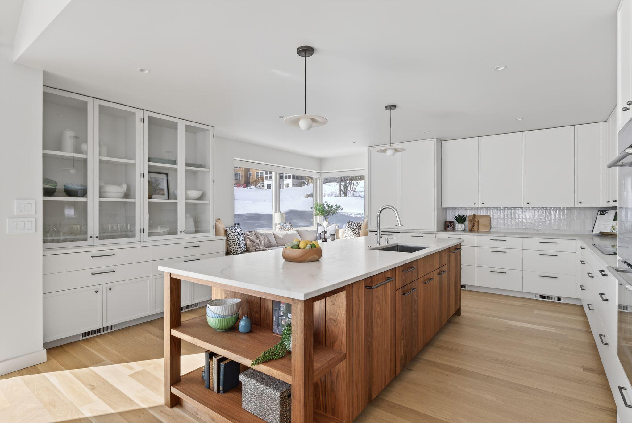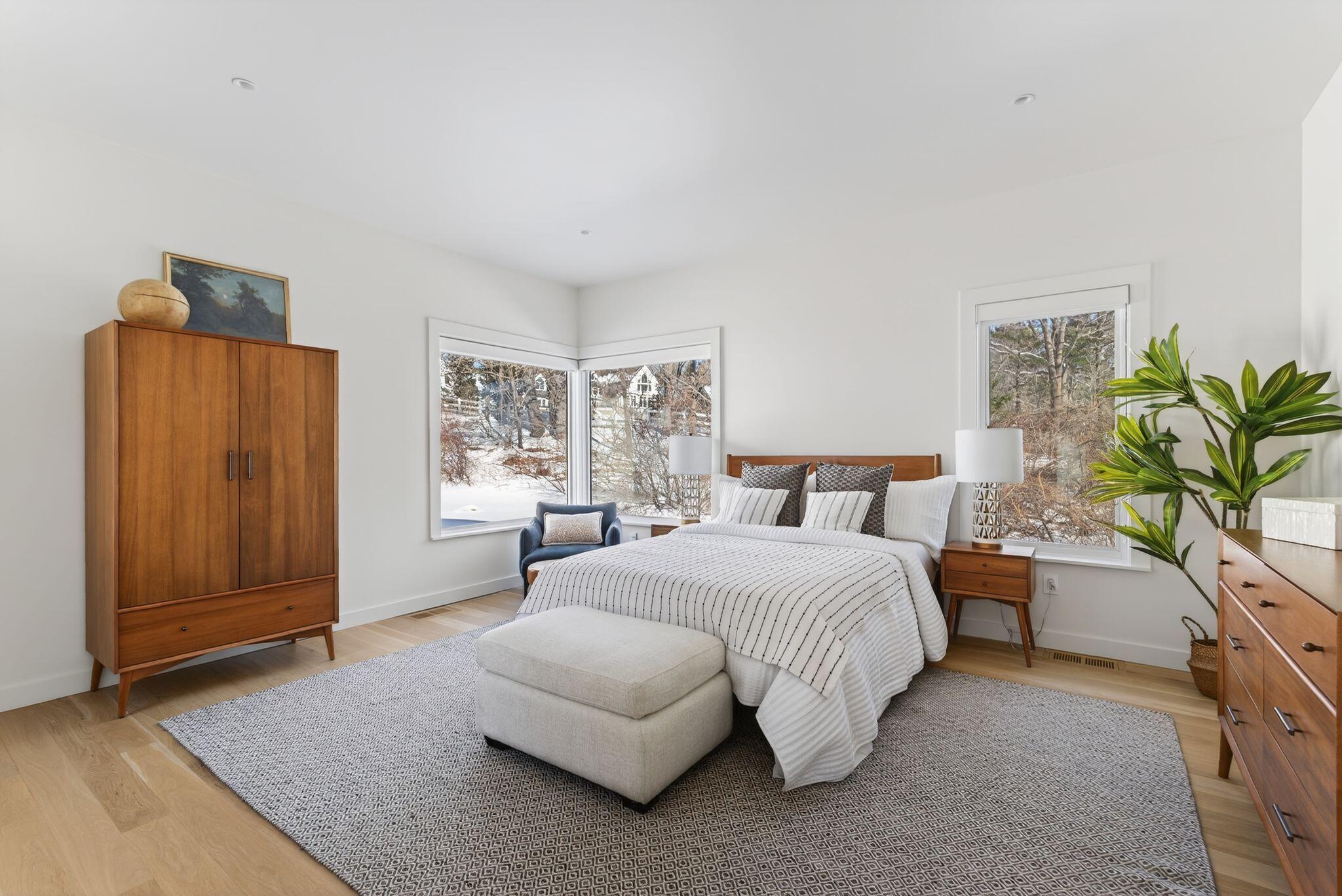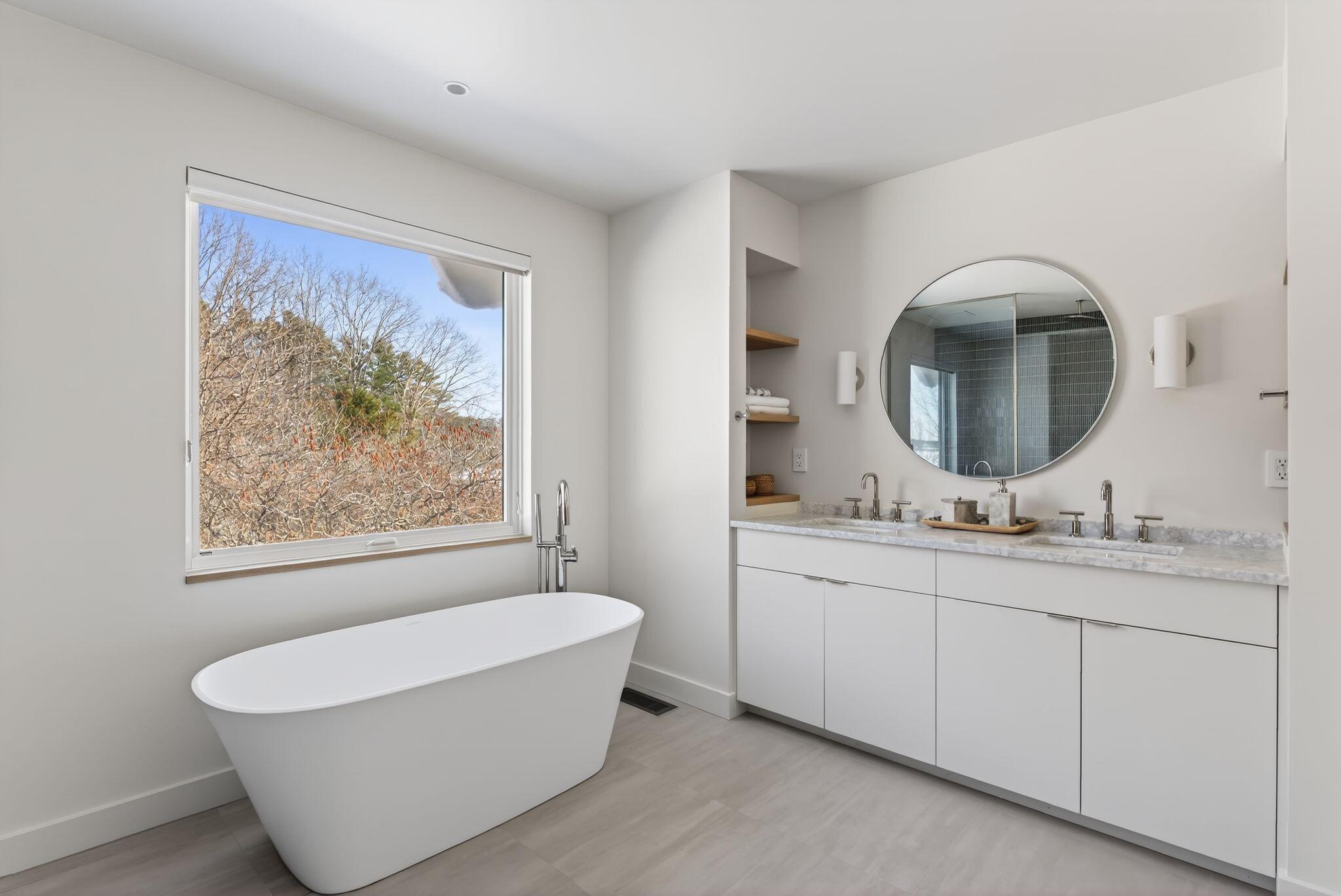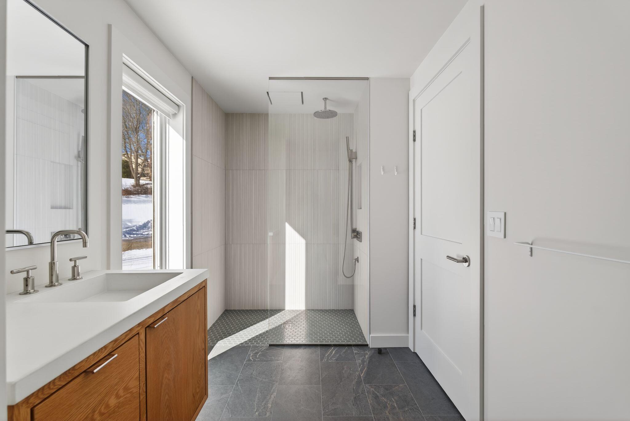 Newly completed in 2025, a collaboration between architect Jessie Carroll and Bowley Builders, this striking contemporary residence pairs sleek modern design with the quiet beauty of the Maine coastline. Set amid natural surroundings with 155 feet of Casco Bay water frontage, the home invites ocean air and beautiful views into your everyday enjoyment. Floor-to-ceiling windows define the open concept interior, welcoming the morning sun and creating an ideal setting for unhurried coffee and coastal reflection. A palette of glistening white finishes enhances the sense of light and luxury while offering a refined canvas for personal expression. Soaring ceilings and four generously sized bedrooms include a primary suite with water views and a private spa like bath. The kitchen is both sleek and functional, centered around a statement island and framed by wall-to-wall cabinetry with glass accents, while a corner breakfast nook adds warmth and effortless gathering space. Designed for year round enjoyment, the home balances modern elegance with comfort and convenience, just moments from Foreside amenities and local dining and entertainment.