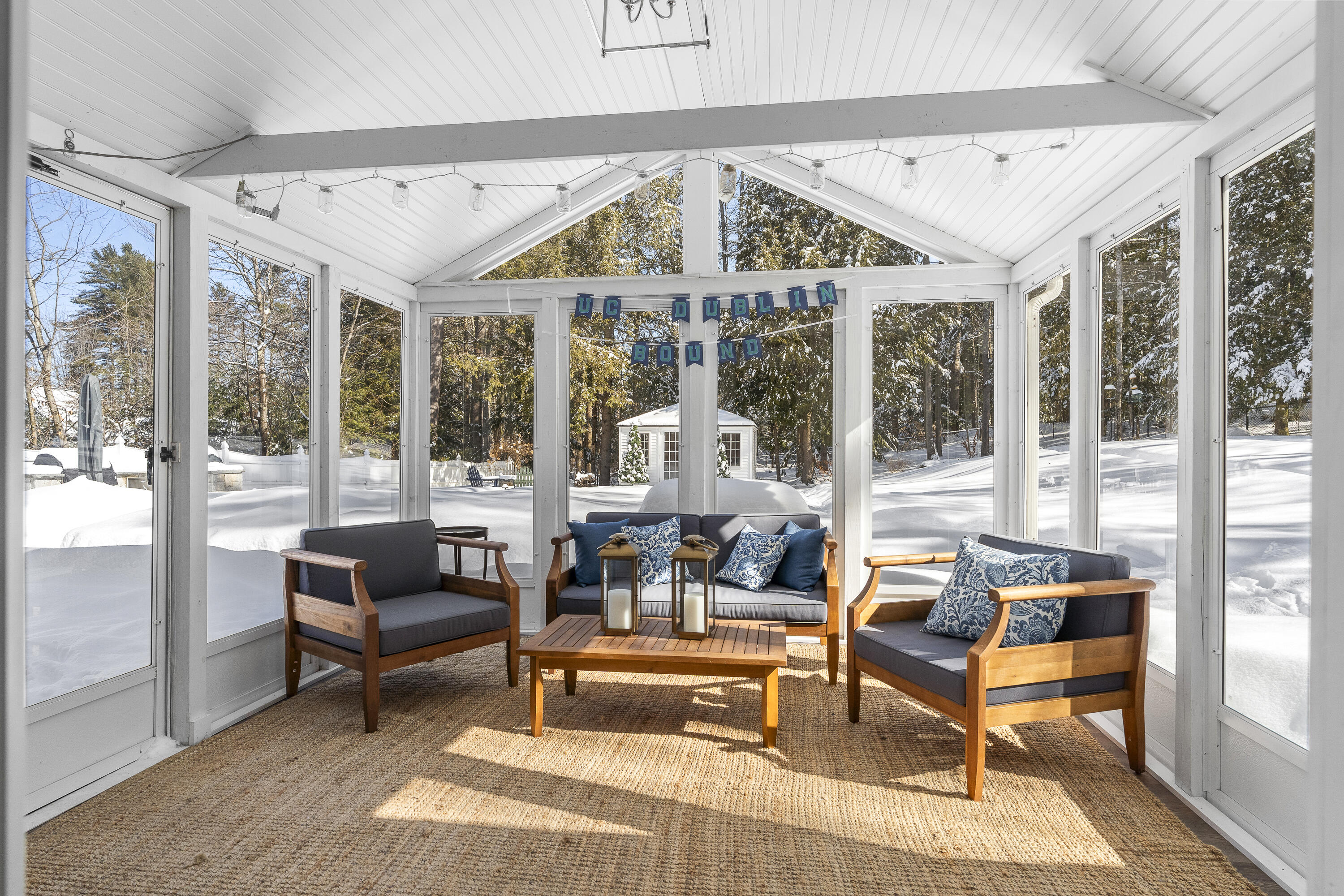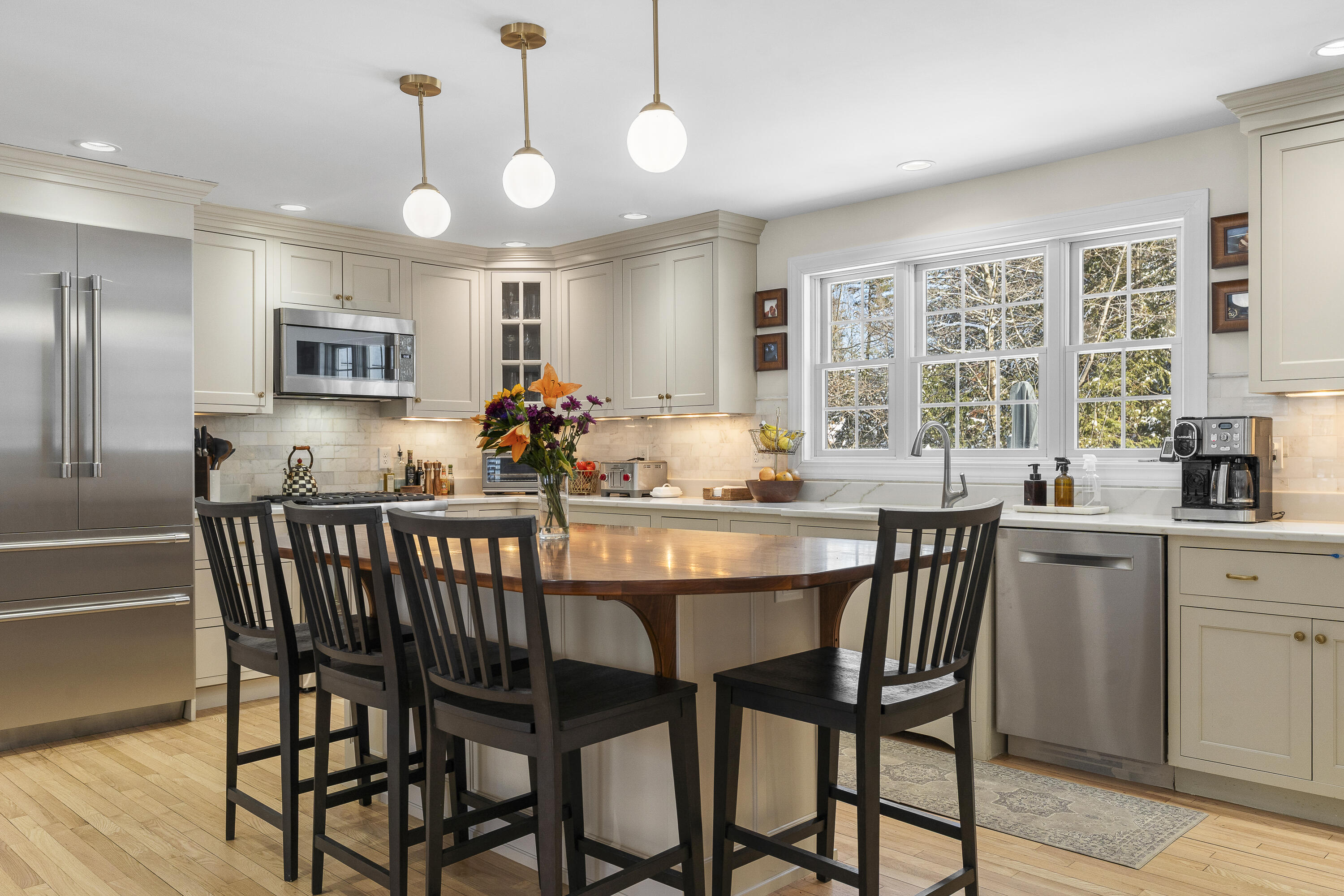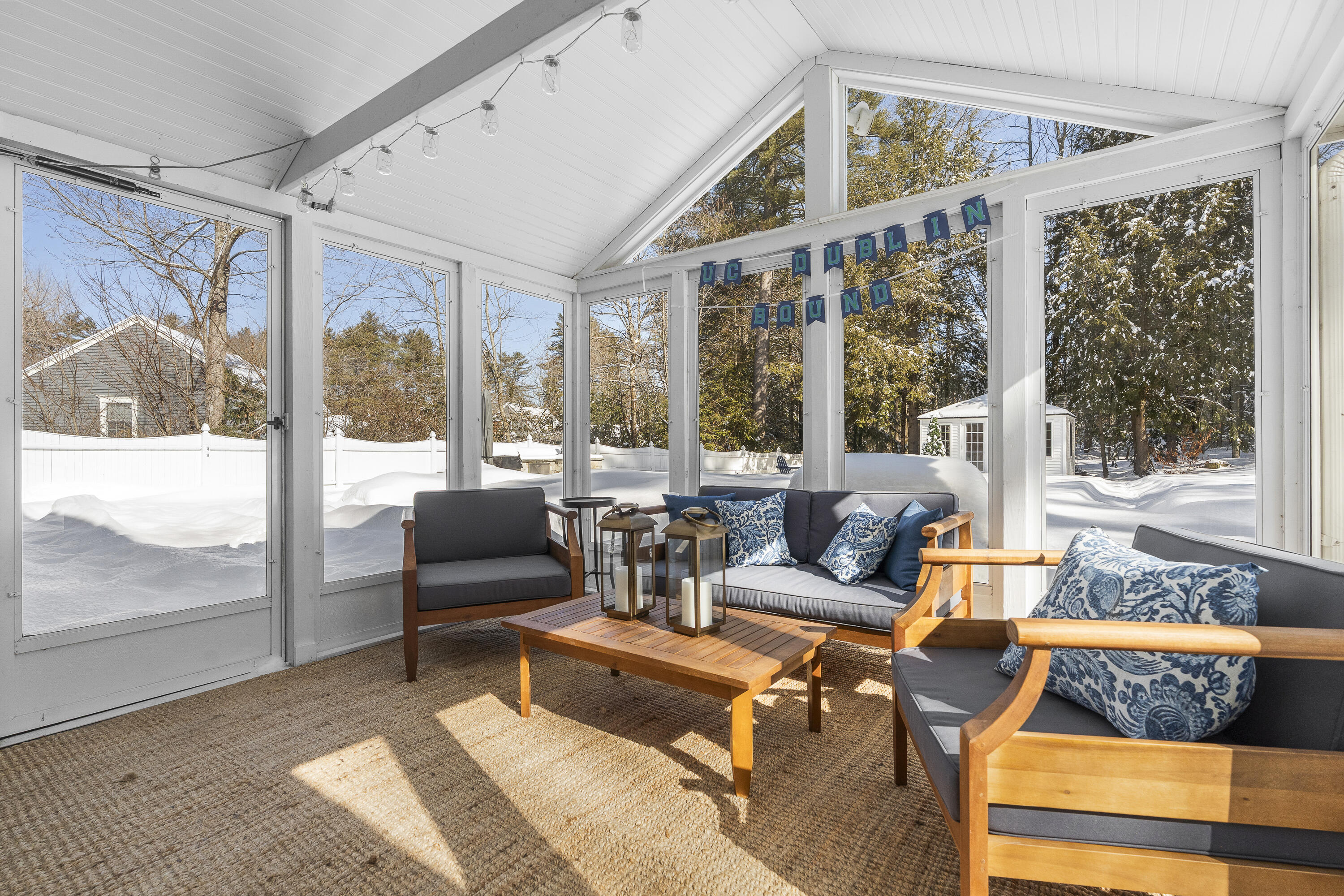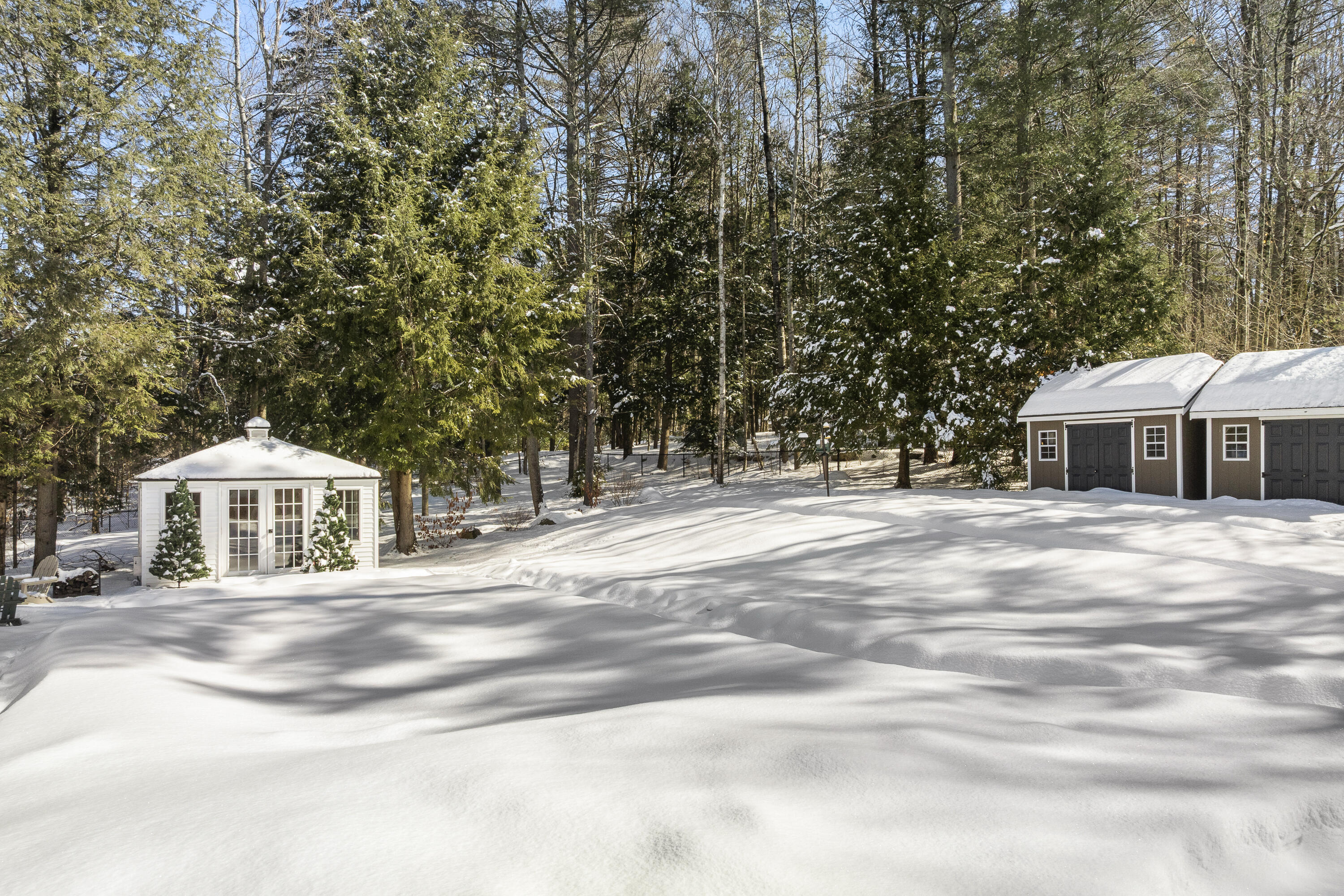 Located in one of Yarmouth's most sought-after neighborhoods, this five-bedroom, 2.5-bath home is designed for everyday living and effortless entertaining, inside and out--with paths connecting directly to local schools and the West Side Trail, making it easy to enjoy the best of the neighborhood lifestyle. The backyard is a true retreat--fully fenced and featuring a pool, outdoor kitchen, screened three-season porch, and two storage sheds. Whether hosting summer gatherings or enjoying quiet evenings, this private outdoor space provides exceptional versatility. Inside, vaulted ceilings with exposed beams create an inviting sense of openness. The living room features plantation shutters and a gas fireplace, while built-in speakers enhance the dining area. The kitchen is beautifully appointed with quartz countertops, a butcher block island, pantry, gas range, microwave, and Thermador appliances--ideal for both casual meals and entertaining. A tiled mudroom with custom lockers connects to the heated two-car garage with epoxy floors. A stylish powder room, second living room or office, and dedicated laundry space complete the main level. Upstairs, bedrooms provide comfort and character, including window seating, ceiling fans, and heat pumps for efficient climate control. The primary suite features vaulted ceilings with skylights, a walk-in closet with built-ins plus an additional closet, and a private bath with tile flooring and walk-in shower. The finished daylight walkout basement adds flexible living space with a secondary living room, gym area, bedroom with ensuite bath, glass-enclosed shower, and dedicated utility and storage room. Systems include heat pumps, a Viessmann boiler, and updated hot water heater. With a heated garage, multiple living areas, exceptional outdoor amenities, and direct access to trails and schools, this home delivers space, flexibility, and location in one of Yarmouth's most desirable neighborhoods.