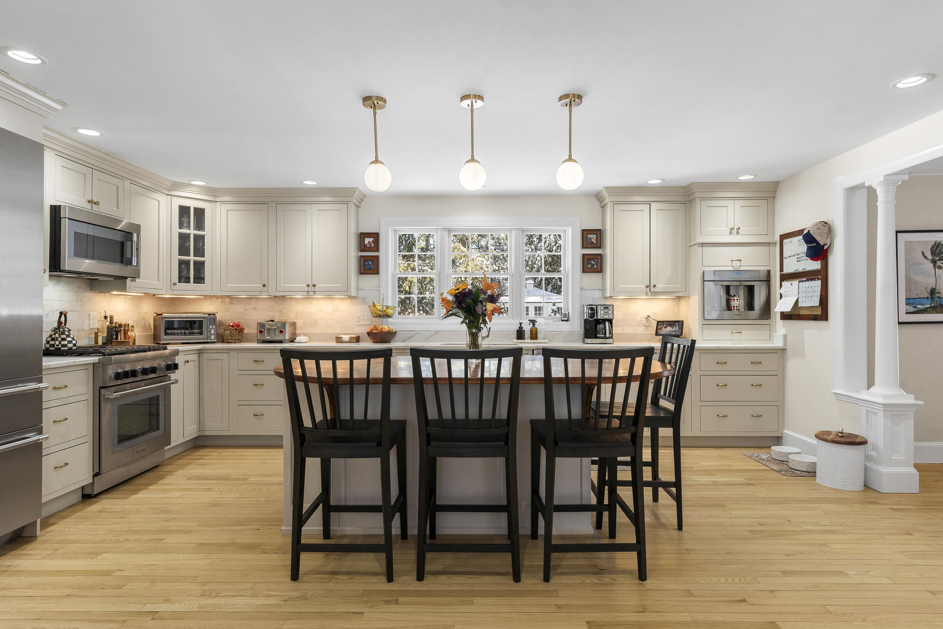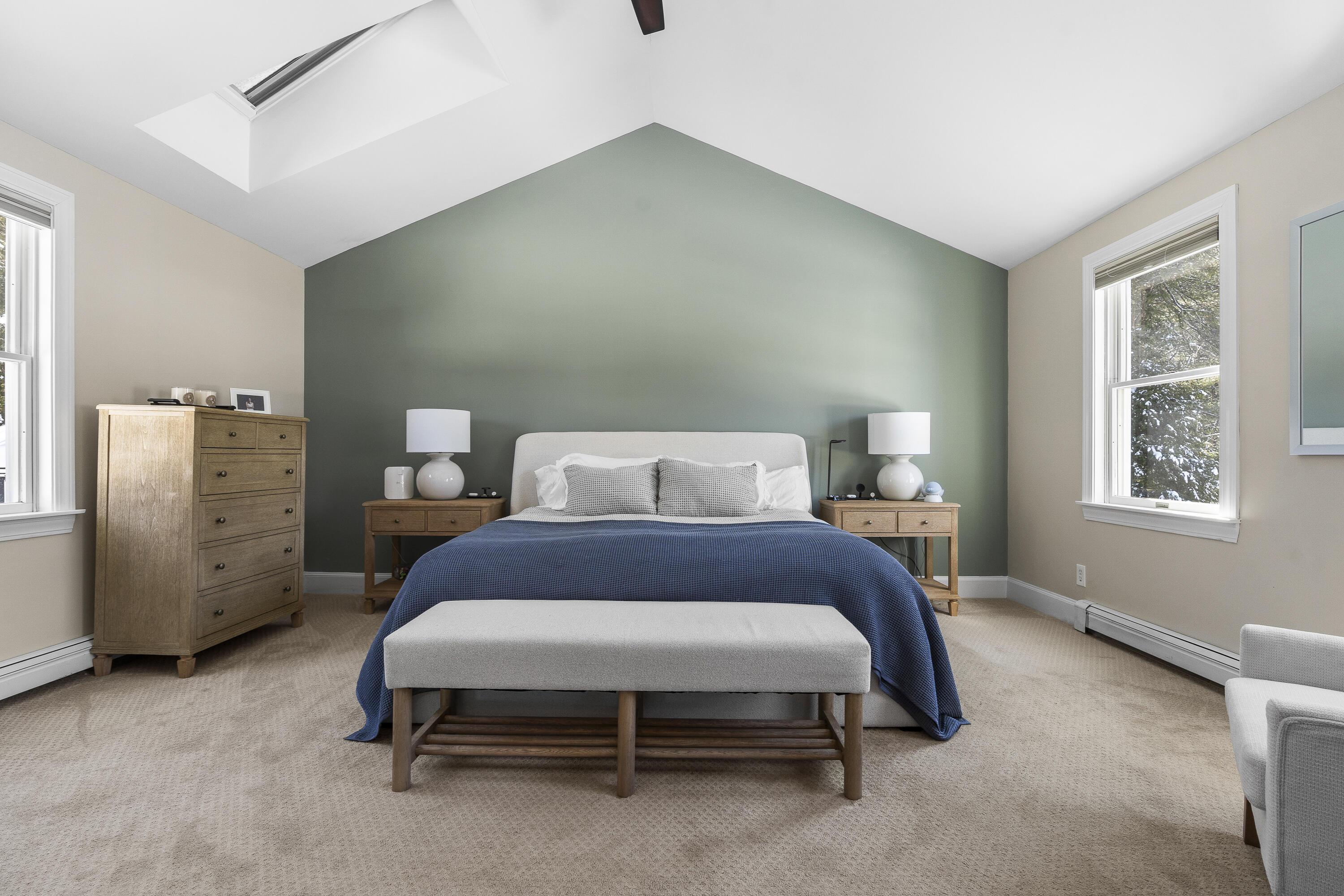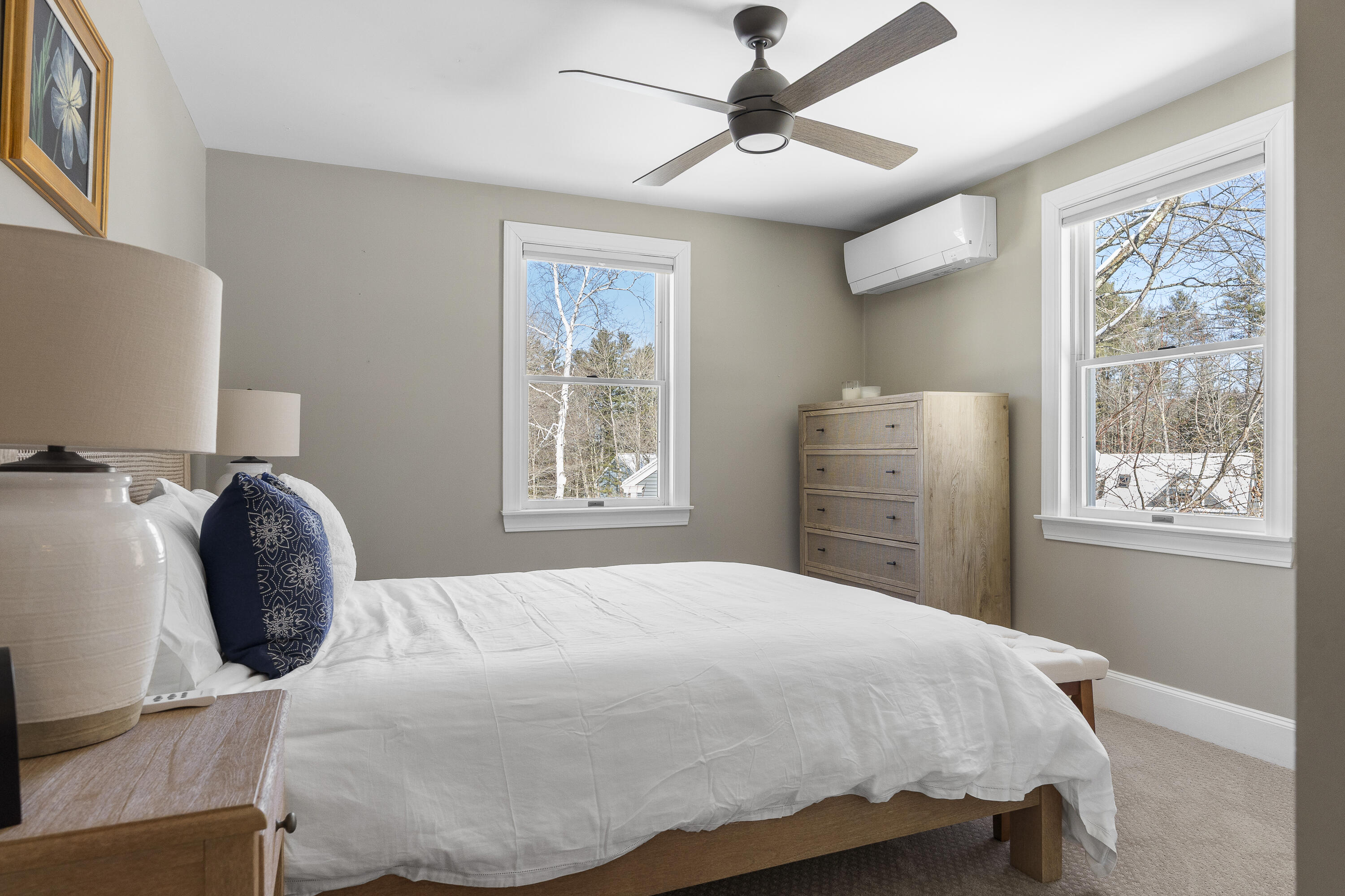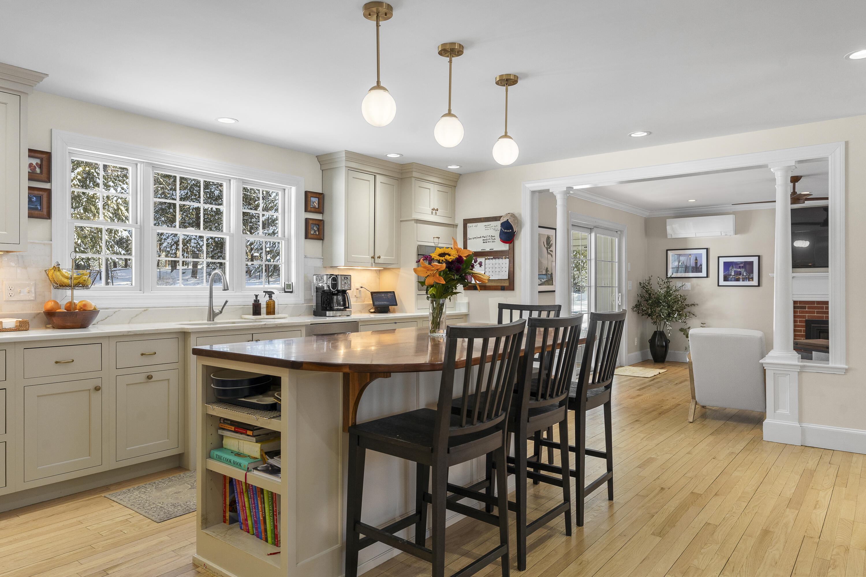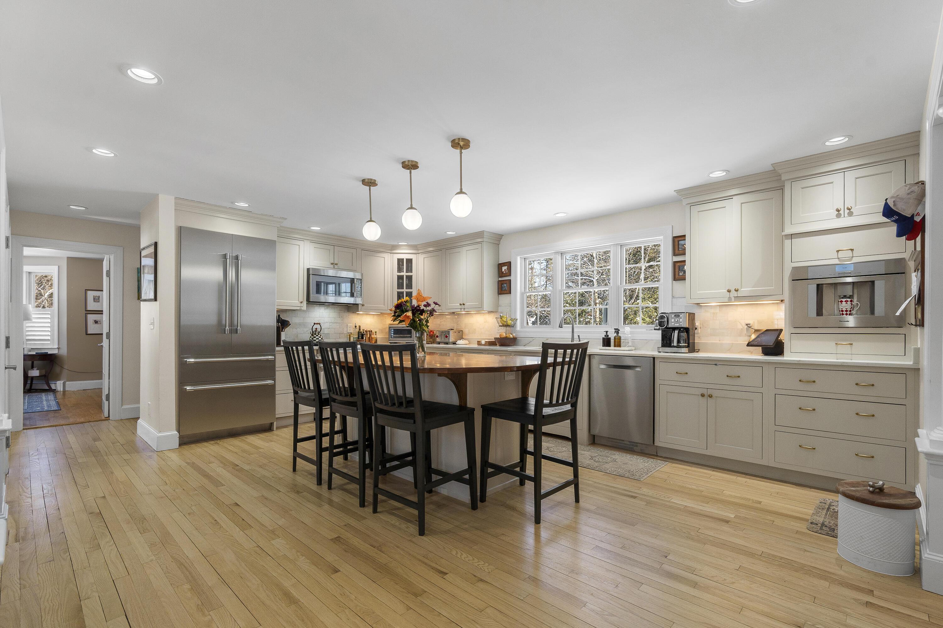 Located in one of Yarmouth's most sought-after neighborhoods, this five-bedroom, 2.5-bath home is designed for everyday living and effortless entertaining, inside and out--with paths connecting directly to local schools and the West Side Trail, making it easy to enjoy the best of the neighborhood lifestyle. The backyard is a true retreat--fully fenced and featuring a pool, outdoor kitchen, screened three-season porch, and two storage sheds. Whether hosting summer gatherings or enjoying quiet evenings, this private outdoor space provides exceptional versatility. Inside, vaulted ceilings with exposed beams create an inviting sense of openness. The living room features plantation shutters and a gas fireplace, while built-in speakers enhance the dining area. The kitchen is beautifully appointed with quartz countertops, a butcher block island, pantry, gas range, microwave, and Thermador appliances--ideal for both casual meals and entertaining. A tiled mudroom with custom lockers connects to the heated two-car garage with epoxy floors. A stylish powder room, second living room or office, and dedicated laundry space complete the main level. Upstairs, bedrooms provide comfort and character, including window seating, ceiling fans, and heat pumps for efficient climate control. The primary suite features vaulted ceilings with skylights, a walk-in closet with built-ins plus an additional closet, and a private bath with tile flooring and walk-in shower. The finished daylight walkout basement adds flexible living space with a secondary living room, gym area, bedroom with ensuite bath, glass-enclosed shower, and dedicated utility and storage room. Systems include heat pumps, a Viessmann boiler, and updated hot water heater. With a heated garage, multiple living areas, exceptional outdoor amenities, and direct access to trails and schools, this home delivers space, flexibility, and location in one of Yarmouth's most desirable neighborhoods.
