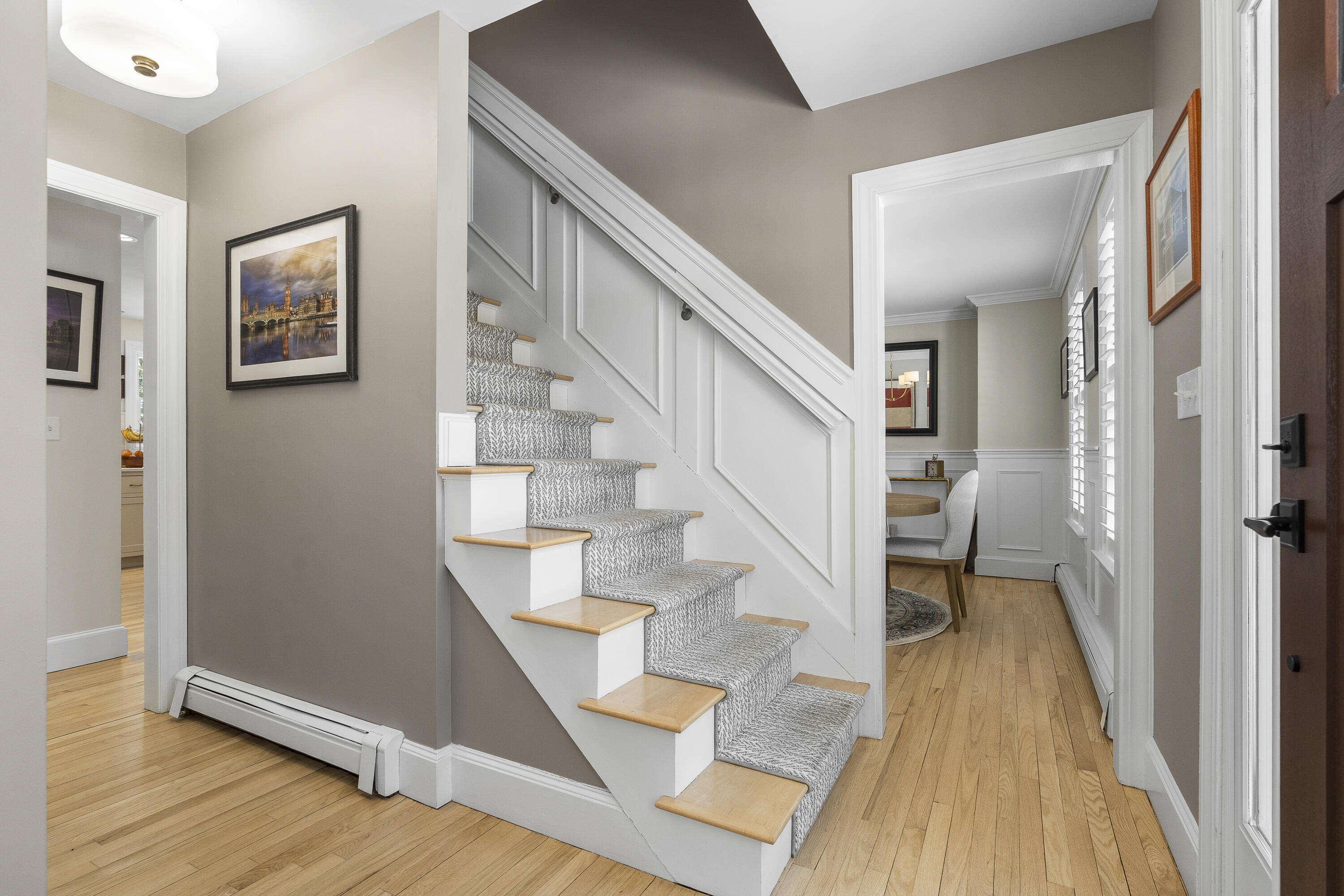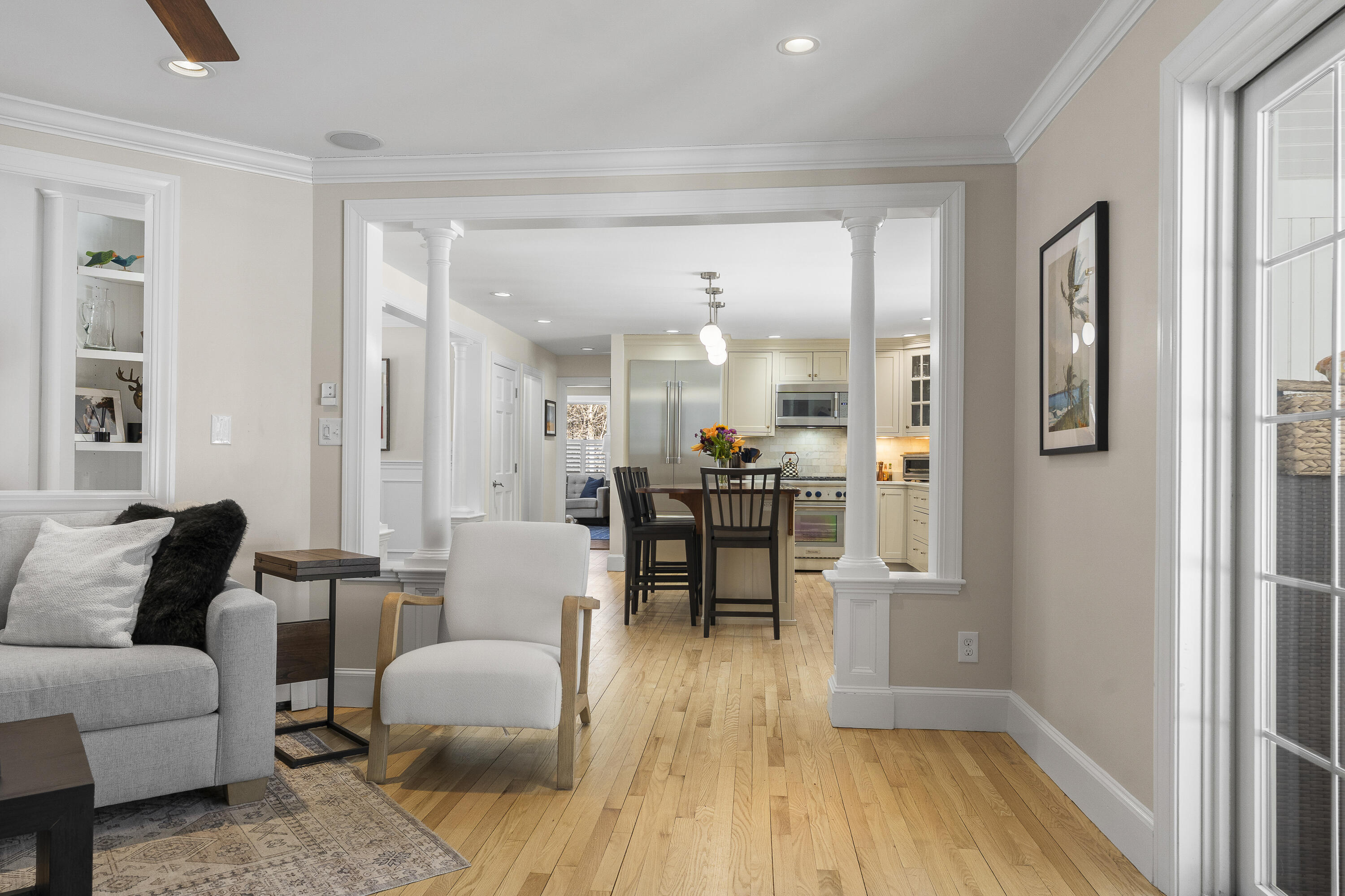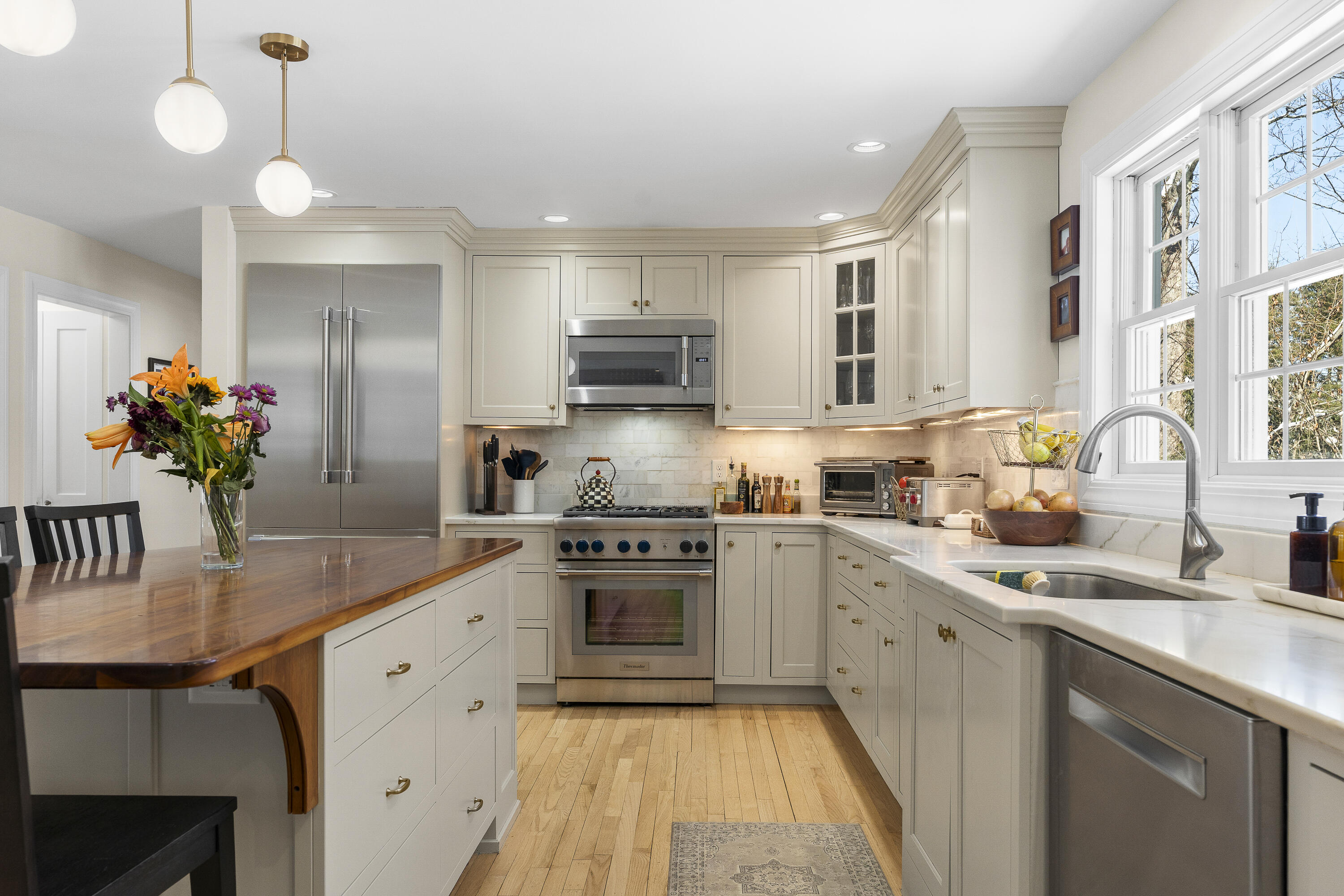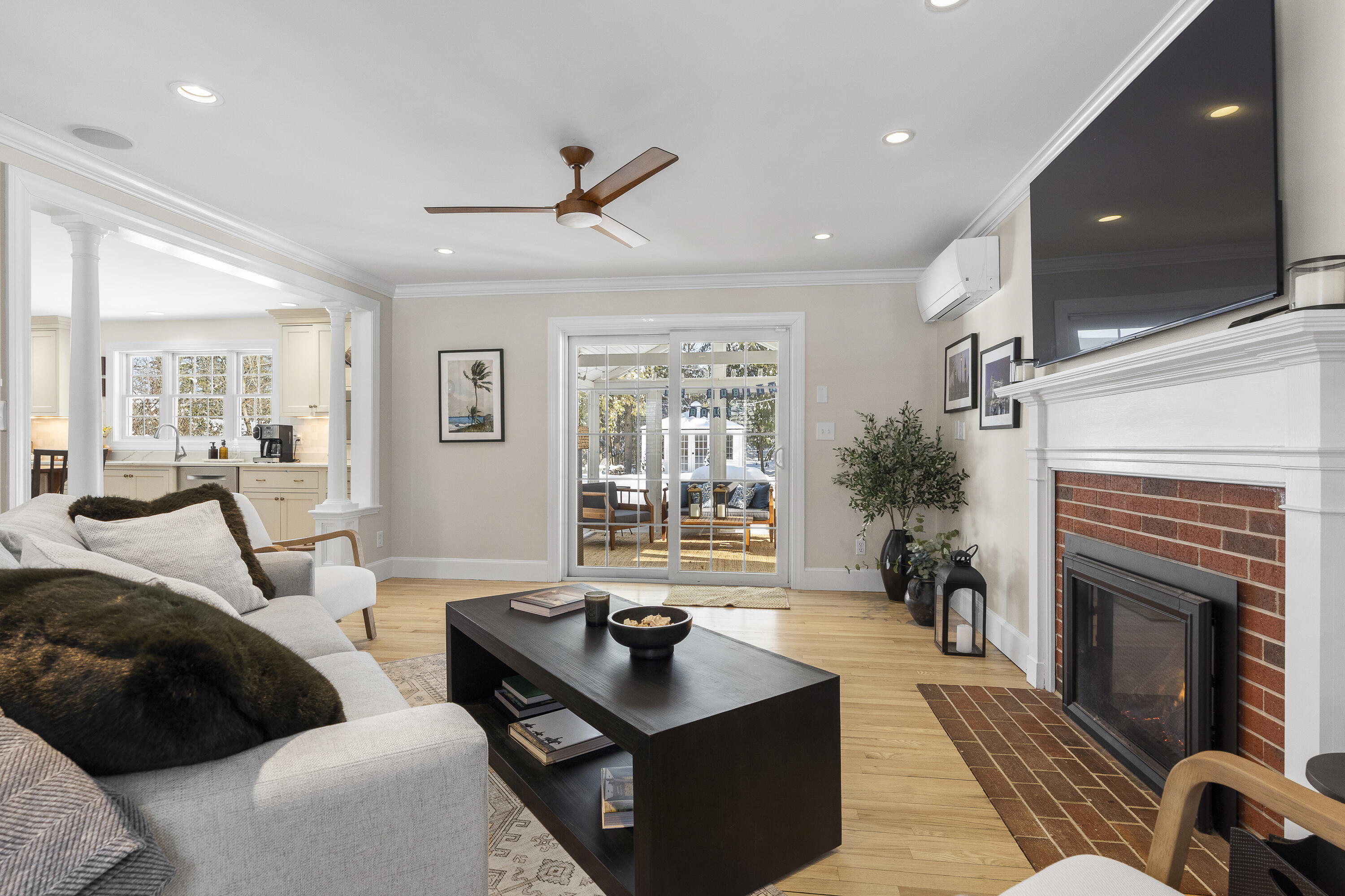 Located in one of Yarmouth's most sought-after neighborhoods, this five-bedroom, 2.5-bath home is designed for everyday living and effortless entertaining, inside and out--with paths connecting directly to local schools and the West Side Trail, making it easy to enjoy the best of the neighborhood lifestyle. The backyard is a true retreat--fully fenced and featuring a pool, outdoor kitchen, screened three-season porch, and two storage sheds. Whether hosting summer gatherings or enjoying quiet evenings, this private outdoor space provides exceptional versatility. Inside, vaulted ceilings with exposed beams create an inviting sense of openness. The living room features plantation shutters and a gas fireplace, while built-in speakers enhance the dining area. The kitchen is beautifully appointed with quartz countertops, a butcher block island, pantry, gas range, microwave, and Thermador appliances--ideal for both casual meals and entertaining. A tiled mudroom with custom lockers connects to the heated two-car garage with epoxy floors. A stylish powder room, second living room or office, and dedicated laundry space complete the main level. Upstairs, bedrooms provide comfort and character, including window seating, ceiling fans, and heat pumps for efficient climate control. The primary suite features vaulted ceilings with skylights, a walk-in closet with built-ins plus an additional closet, and a private bath with tile flooring and walk-in shower. The finished daylight walkout basement adds flexible living space with a secondary living room, gym area, bedroom with ensuite bath, glass-enclosed shower, and dedicated utility and storage room. Systems include heat pumps, a Viessmann boiler, and updated hot water heater. With a heated garage, multiple living areas, exceptional outdoor amenities, and direct access to trails and schools, this home delivers space, flexibility, and location in one of Yarmouth's most desirable neighborhoods.
