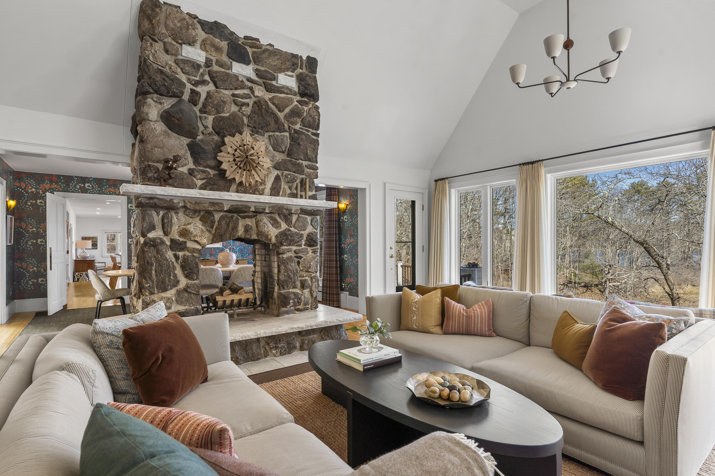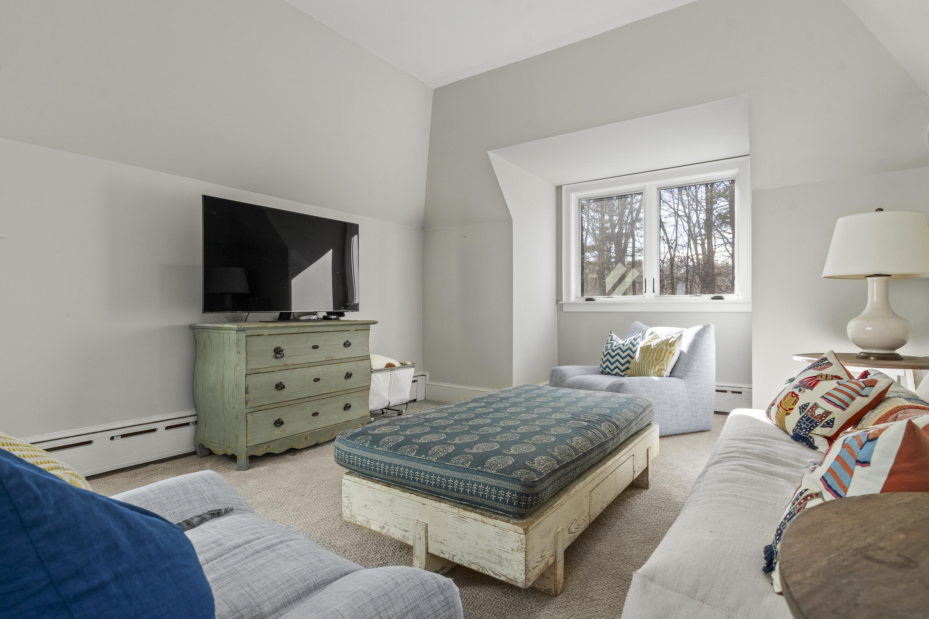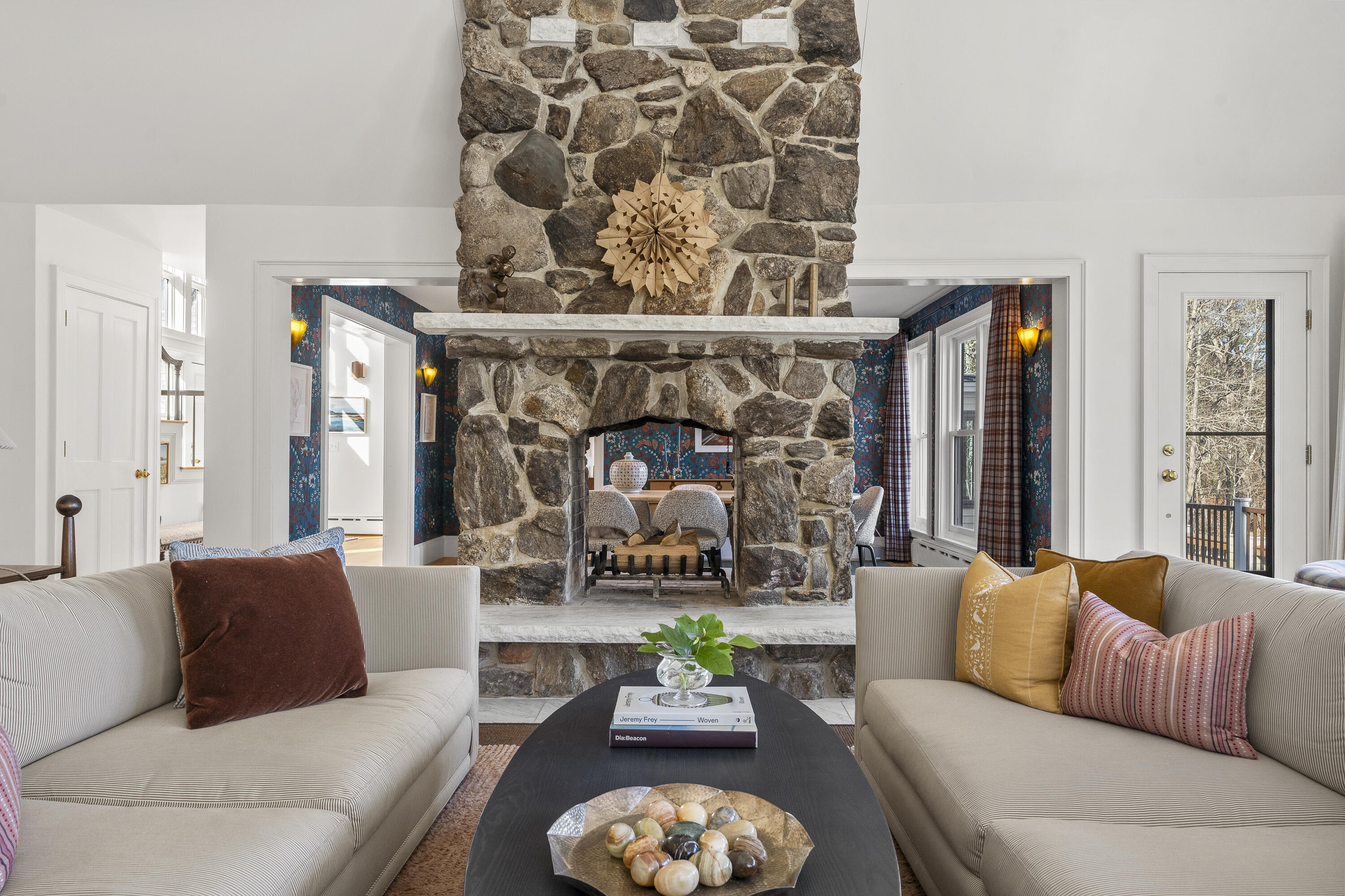 Perched along the shores of Casco Bay, this exceptional waterfront home offers a rare opportunity to own approximately 800 feet of frontage and 6 private acres in one of Yarmouth's most sought-after coastal settings. Surrounded by natural beauty and ever-changing views, the property captures the essence of Maine living, with multiple decks and patios designed to take in the light, the water, and the rhythm of the bay. Inside, over 5,000 square feet of refined living space unfolds with a layout that feels both expansive and intentional. The kitchen, beautifully appointed with soapstone countertops, opens seamlessly to a gracious family room. A striking great room with a cathedral ceiling and two-sided stone fireplace anchors the home, flowing naturally into the dining area. A distinctive circular office, wrapped in windows and overlooking the water, creates a bright and inspiring workspace with a truly unique vantage point. The first-floor primary suite offers a sense of privacy and ease, featuring its own fireplace, access to a deck, a walk-in closet, and a dedicated washer and dryer. The second floor includes four additional bedrooms, a second-floor laundry, two full baths, and a media room, while the finished lower level adds a game room, gym, full bath, sauna, and additional flexible space. Located in the charming town of Yarmouth, known for its award-winning schools, and just minutes from Portland, this is a rare and compelling coastal offering.