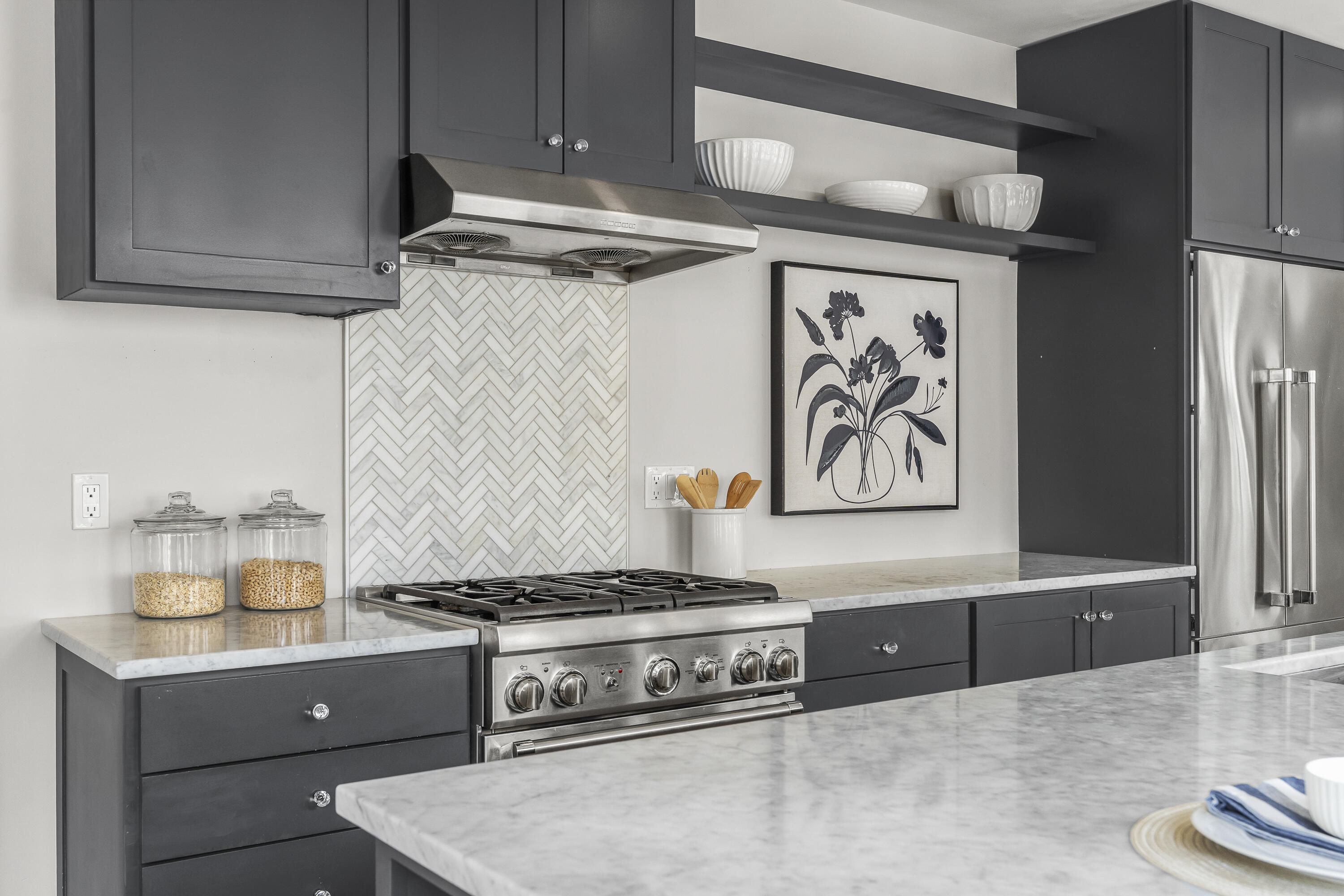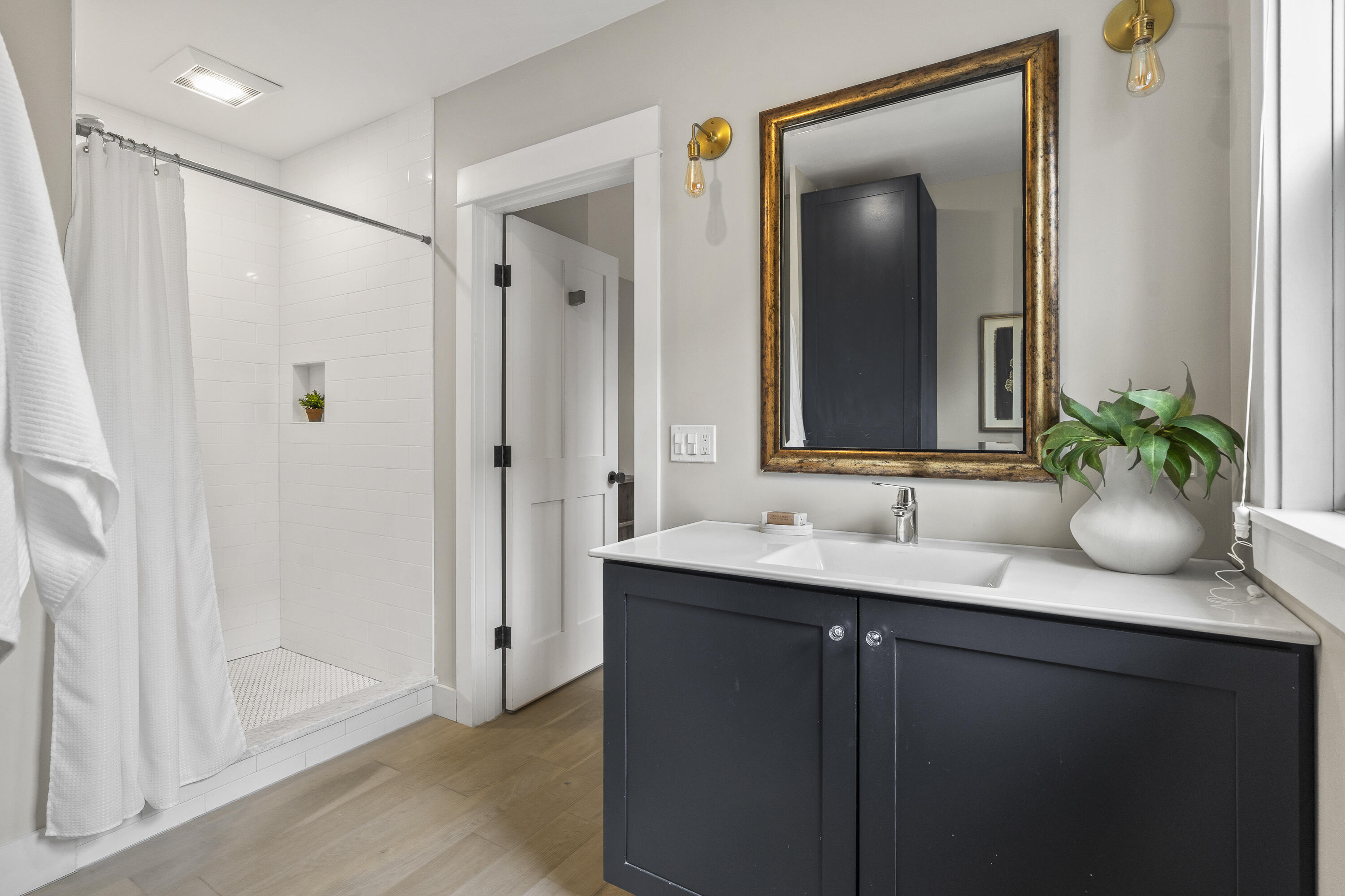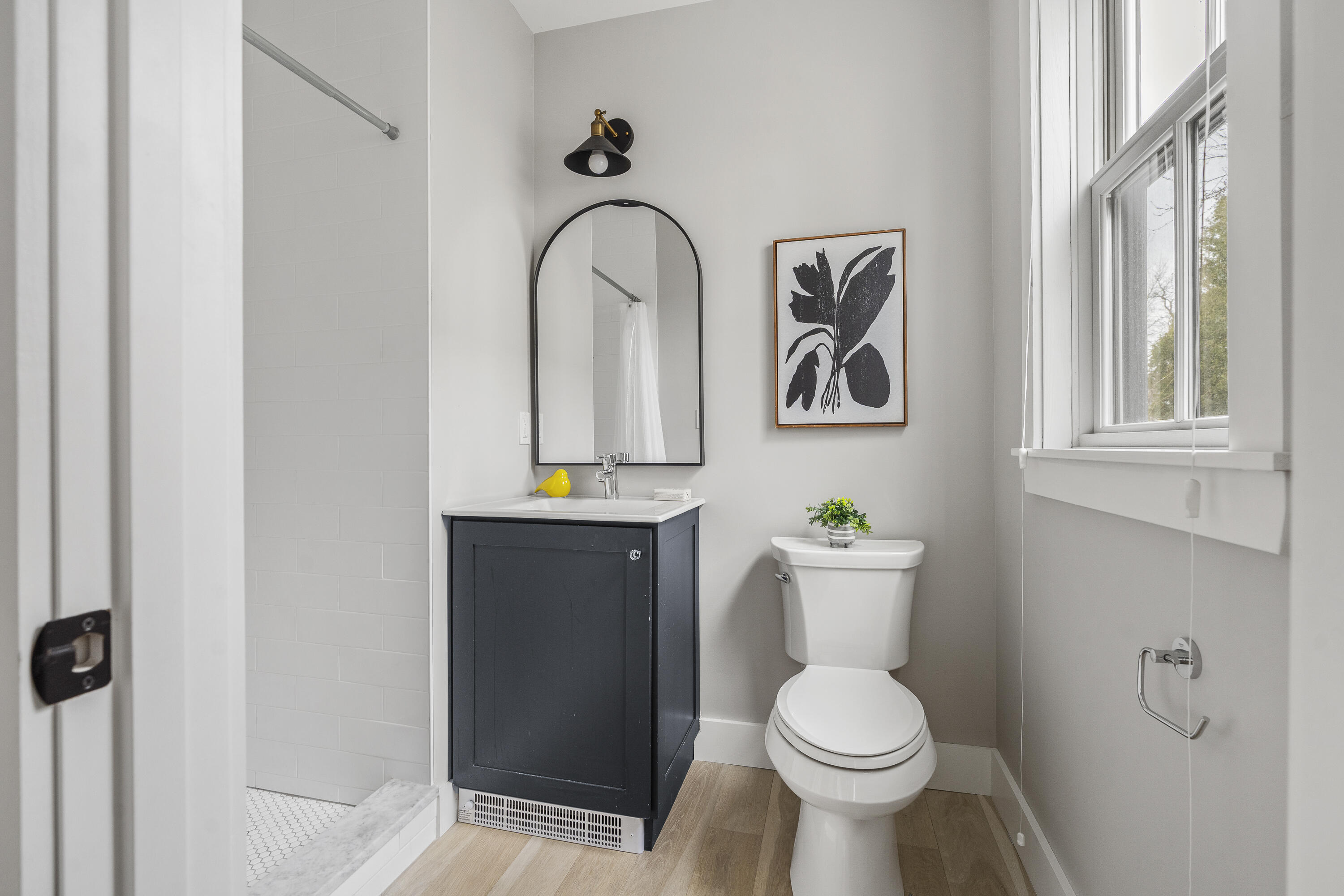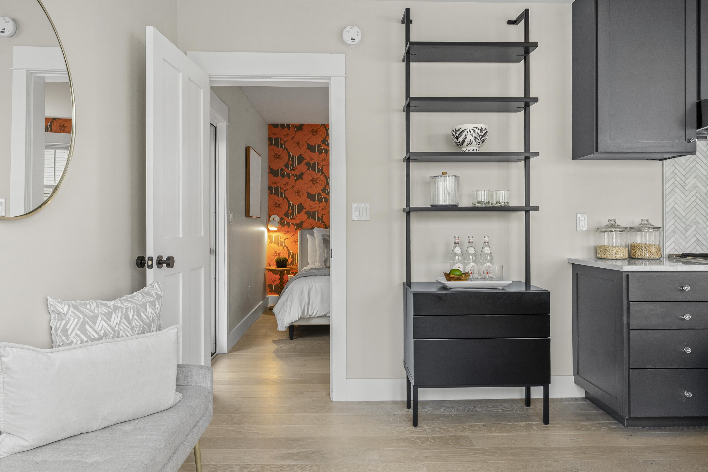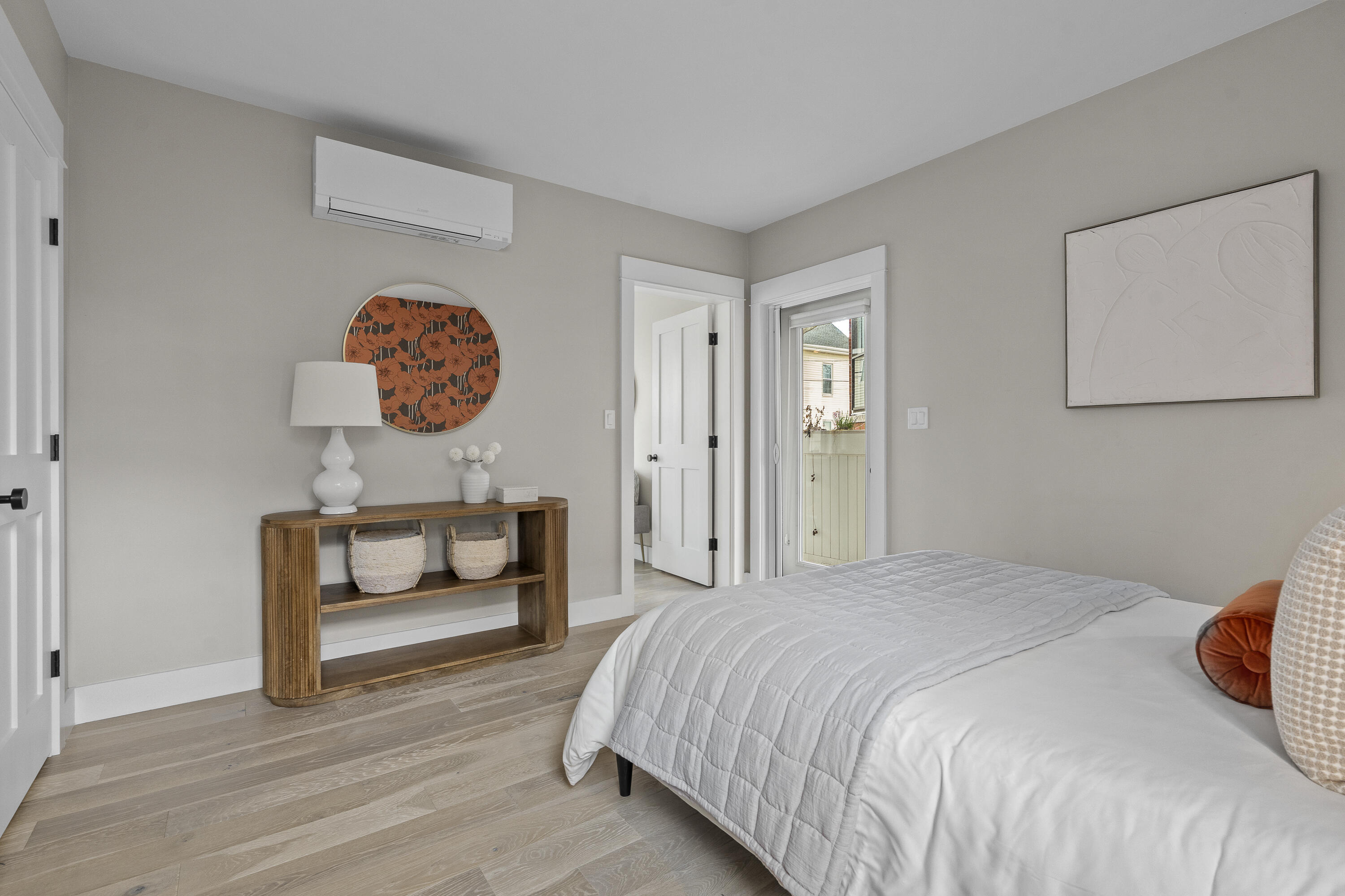 Gracing the top of Munjoy Hill, this condo offers a connection to the city's most beloved amenities and a lifestyle both refined and coastal. It is just moments from celebrated restaurants, neighborhood cafes, the Eastern Promenade, and the sparkling waters of Casco Bay. Originally built with historic character and reimagined in 2018, this condominium balances preserved architectural details with high-end contemporary design. The sun-filled first-floor unit welcomes you with an open layout that connects the living, dining, and kitchen areas. A wall of windows brings in abundant natural light, while a private enclosed deck offers a peaceful outdoor retreat. The kitchen is both striking and functional, featuring rich blue cabinetry, open shelving, a herringbone tile backsplash, a large island with seating for four, and generous storage. Off the living room, pocket doors reveal a charming library nook with floor-to-ceiling bookshelves and a grand bowed window--a serene spot to read or unwind. The primary suite is a sanctuary with elegant wallpaper, deck access, and a spa-like ensuite bath. A second ensuite bedroom provides comfort and privacy for guests, while the powder room adds a designer touch with bold, modern wallpaper. Additional amenities include in-unit laundry, dedicated & off-street parking, and a private storage area. Luxury, convenience, and timeless design converge in this distinctive Munjoy Hill home--an exceptional opportunity to experience Portland living at its finest.